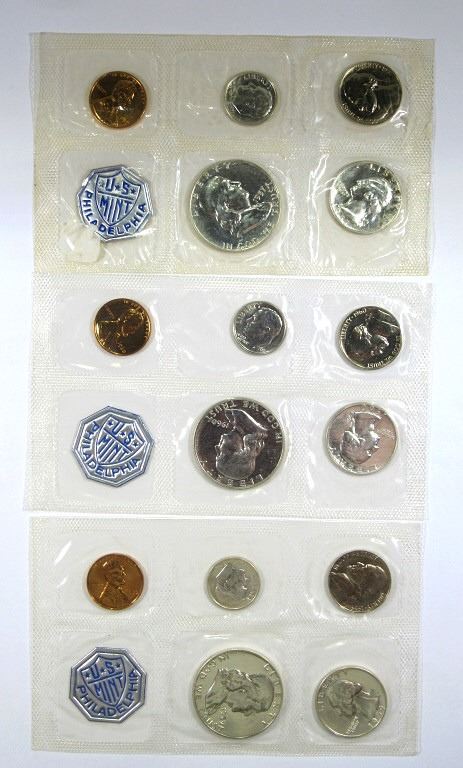 3- U.S. PROOF SETS- 1957, 1959, 1960