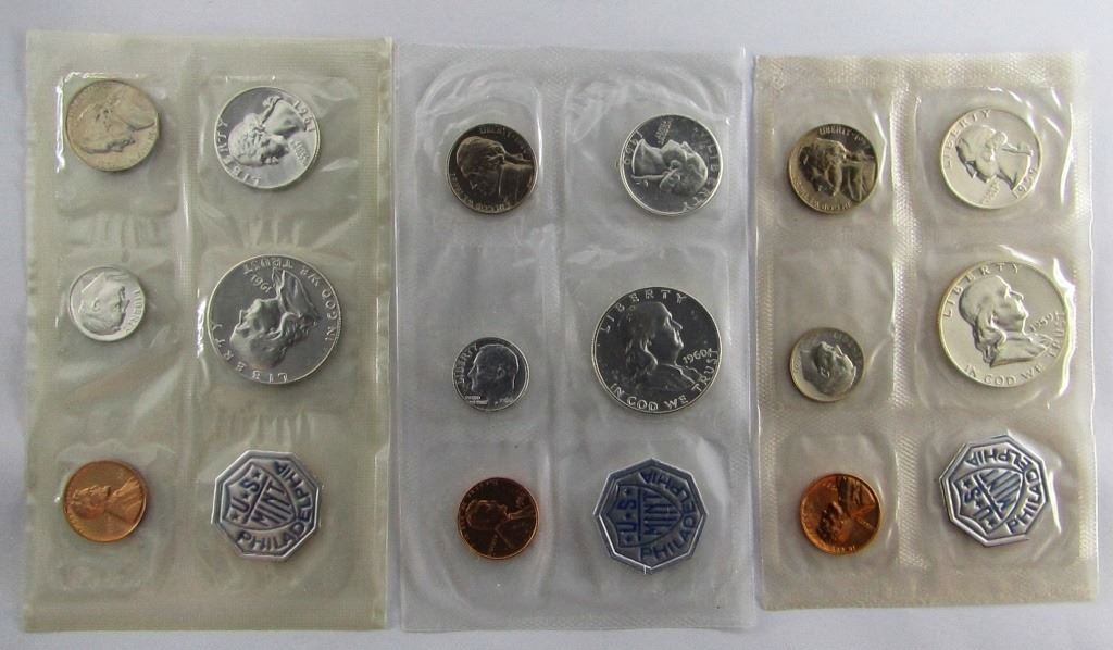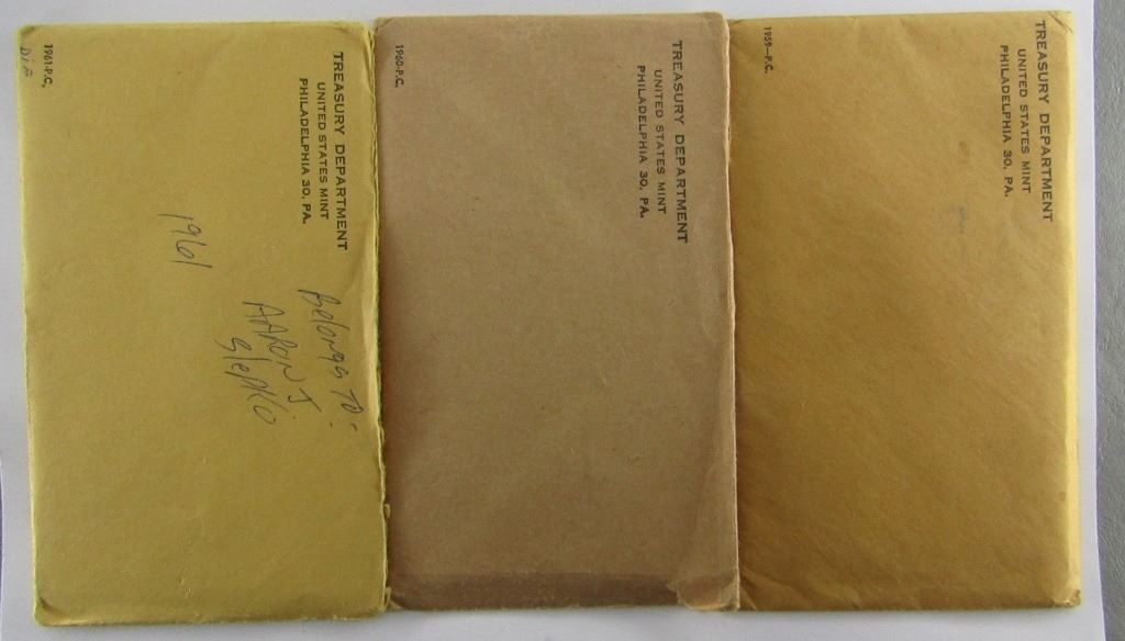 3 - U.S. PROOF SETS - 1959, 1960, 1961 in ORG PKS