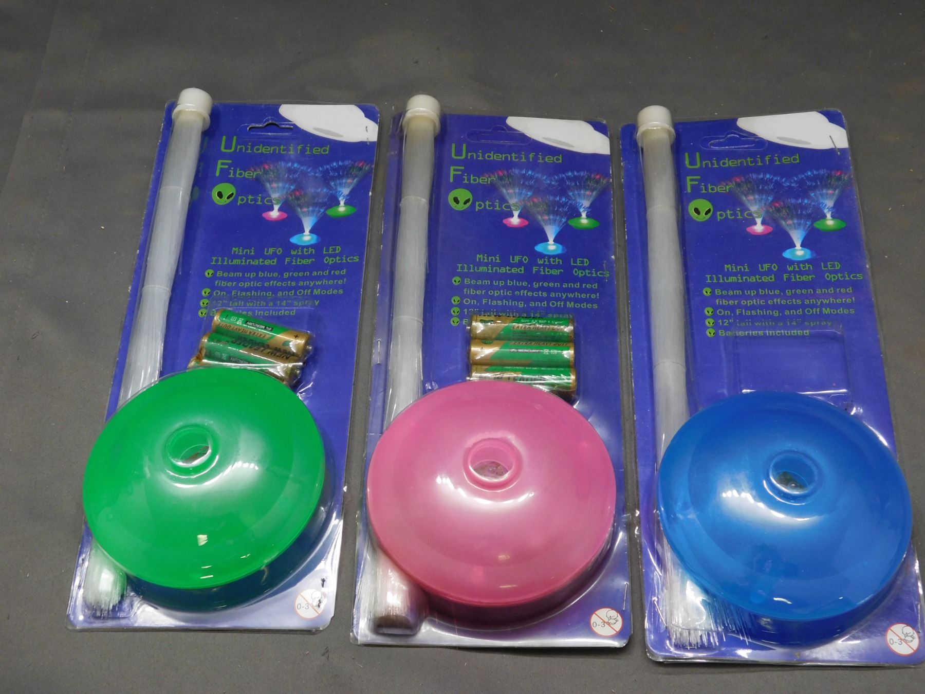 3 UFO Illuminated Fiber Optics Table Lights NEW