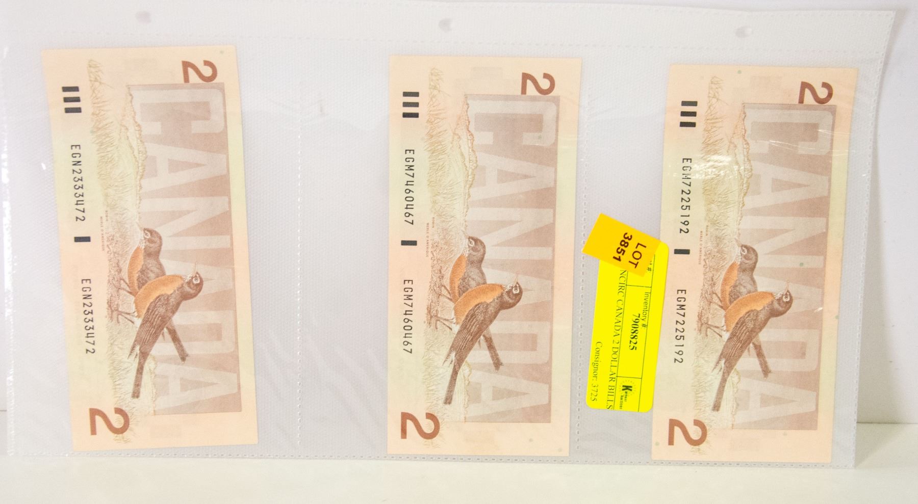 3 UNCIRC CANADA 2 DOLLAR BILLS