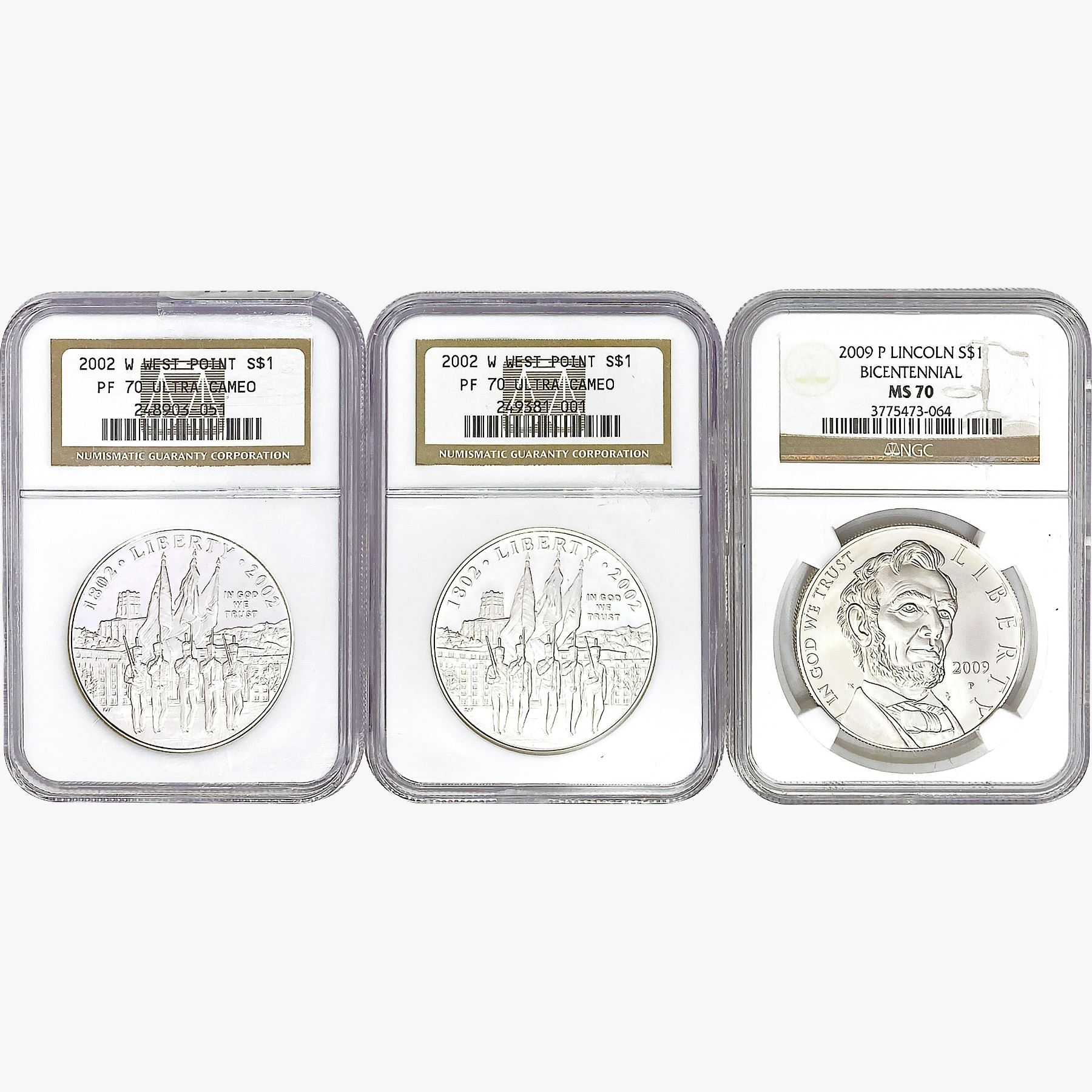 [3] US 1oz Silver Dollars NGC PF70 UC [[2] 2002-W,