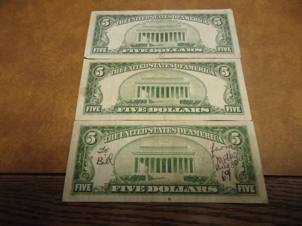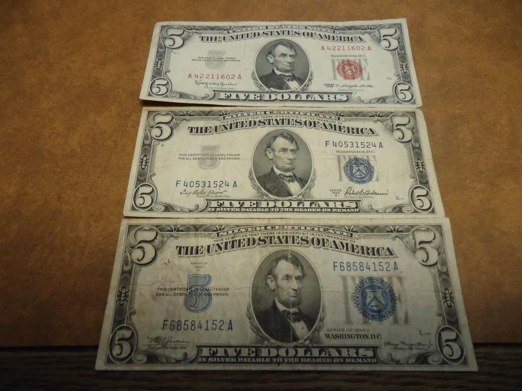 1934-A SILVER CERTIFICATE BLUE SEAL, 1953-A SILVER CERTIFICATE BLUE SEAL AND 1963 US NOTE RED SEAL