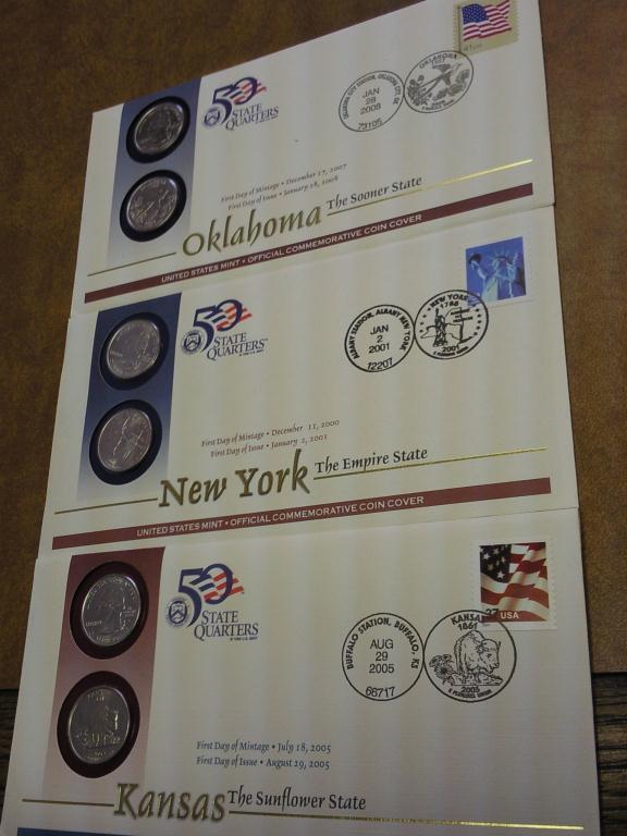 3 US 50 STATE QUARTERS FDC'S (KANSAS, NY, OK)