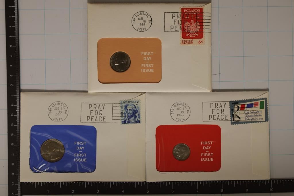 1966 JEFFERSON NICKEL, 1966 ROOSEVELT DIME  AND 1966 WASHINGTON QUARTER
