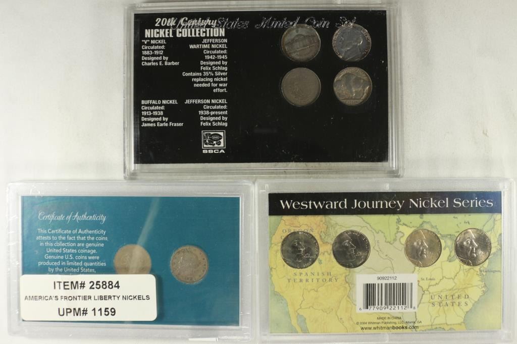 NICKELS, WESTWARD JOURNEY NICKEL SERIES 4 JEFFERSON NICKELS AND 20TH CENTURY NICKEL COLLECTION, LIBERTY "V" NICKEL, BUFFALO NICKEL, 35% SILVER JEFFERSON WAR NICKEL AND JEFFERSON NICKEL