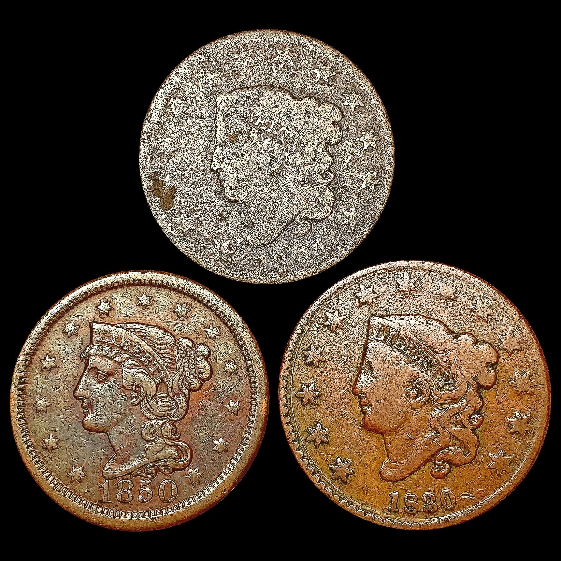 [3] US Large Cents [1824, 1830, 1850] LIGHTLY CIRC
