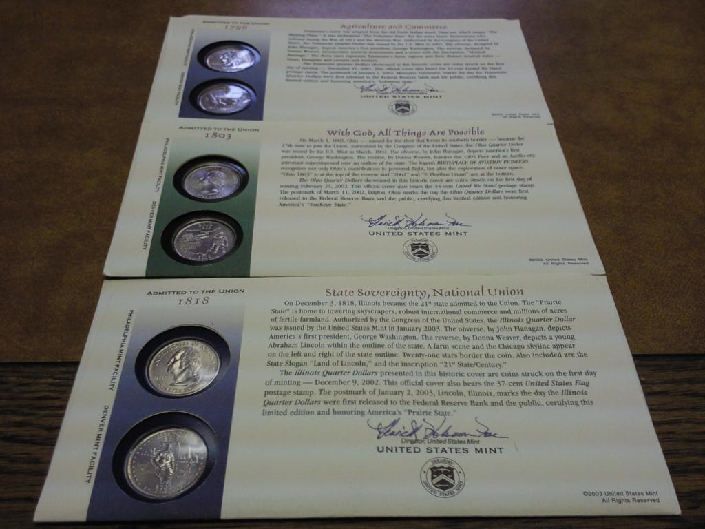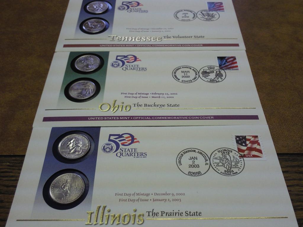 3 US MINT QUARTER FDC'S (IL, OH, TN)