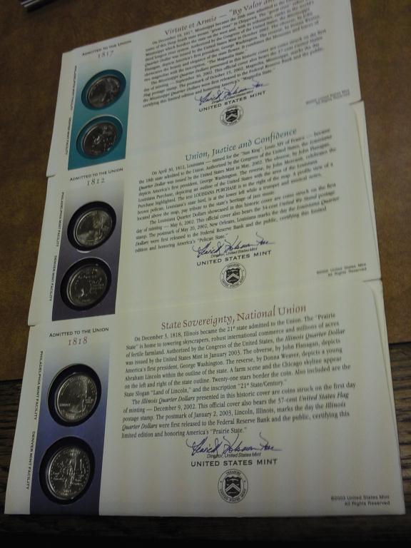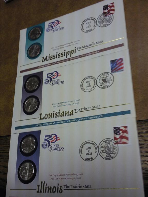 3 US MINT SET STATE QUARTER FDC'S (IL, LA, MS)