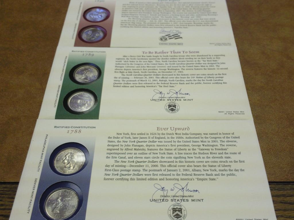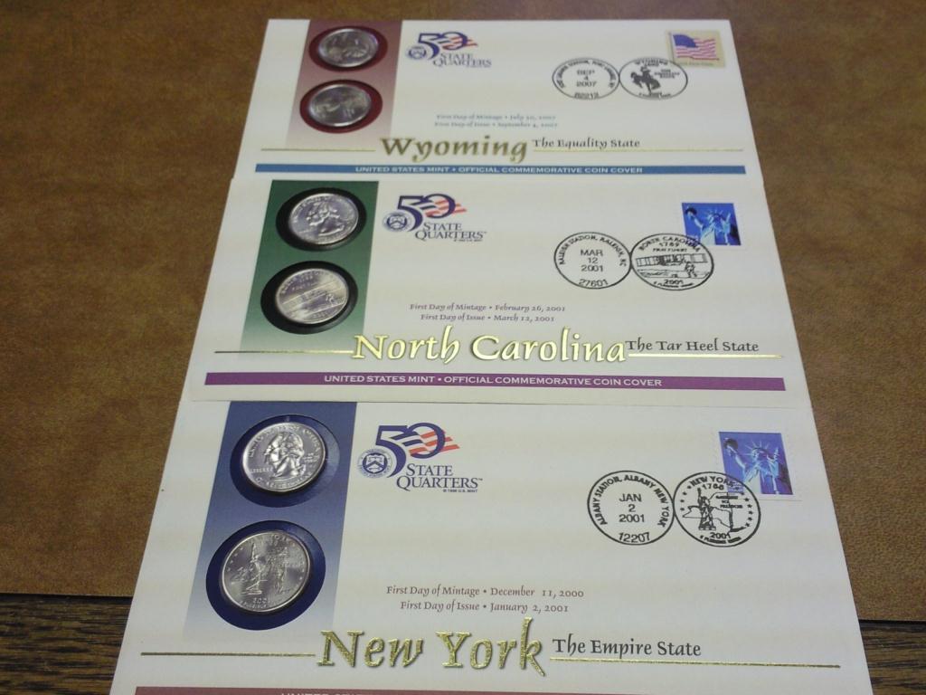 3 US MINT US 50 STATE QUARTER FDC'S (NY, NC, WY)