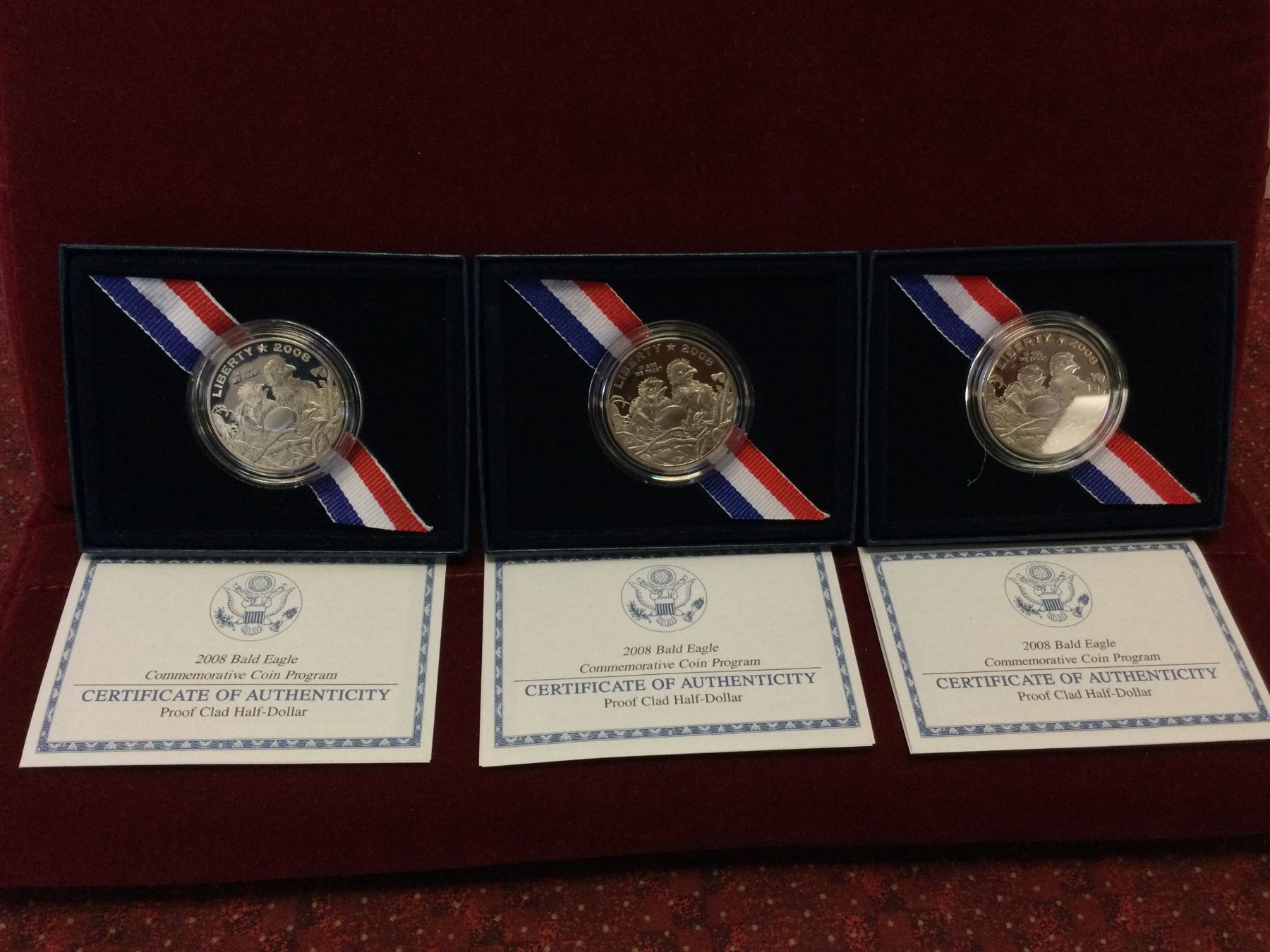 You are bidding the entire group of 3 Proof US 2008 Bald Eagle Commemorative Coins