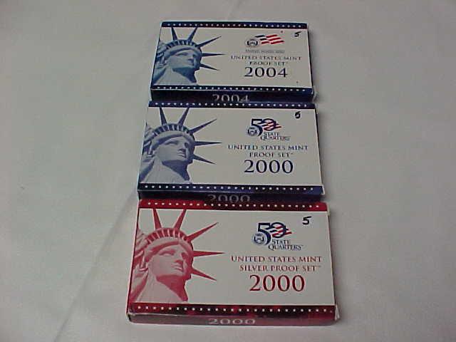 3 US Proof Sets: 2000 Silver, 2000, 2004