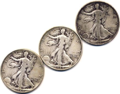3 US SILVER LIBERTY WALKERS-CIRC 1940, 1940, 1937