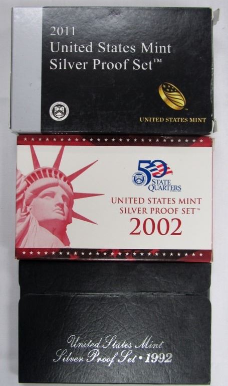 3- US SILVER PROOF SETS- 1992, 2002, 2011