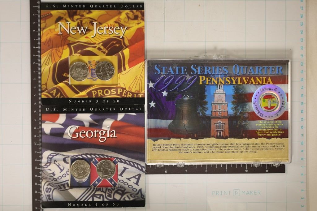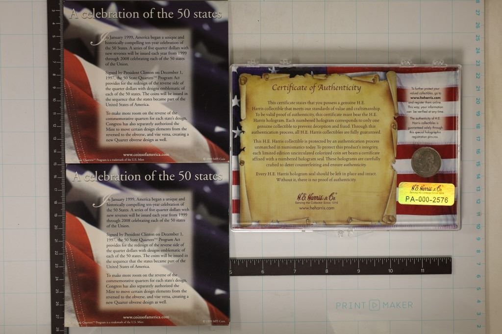 1999-P & D UNC NEW JERSEY AND 1999-P COLORIZED UNC PENNSYLVANIA IN HARD PLASTIC CASE WITH CERTIFICATE OF AUTHENTICITY