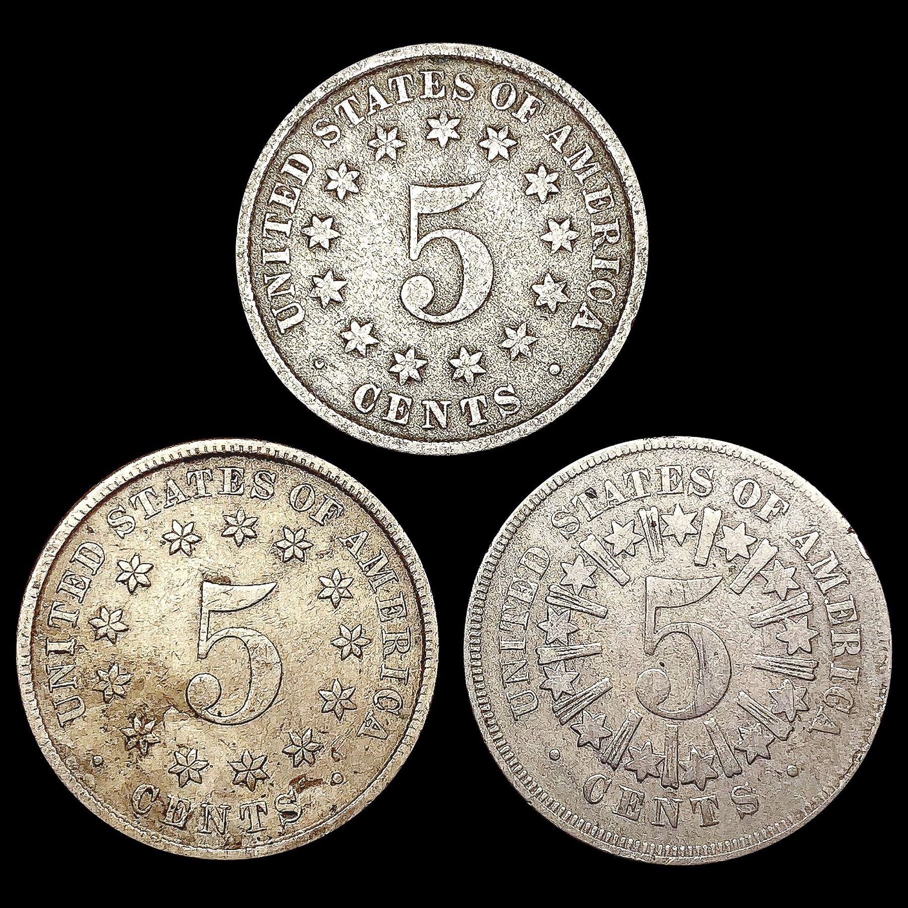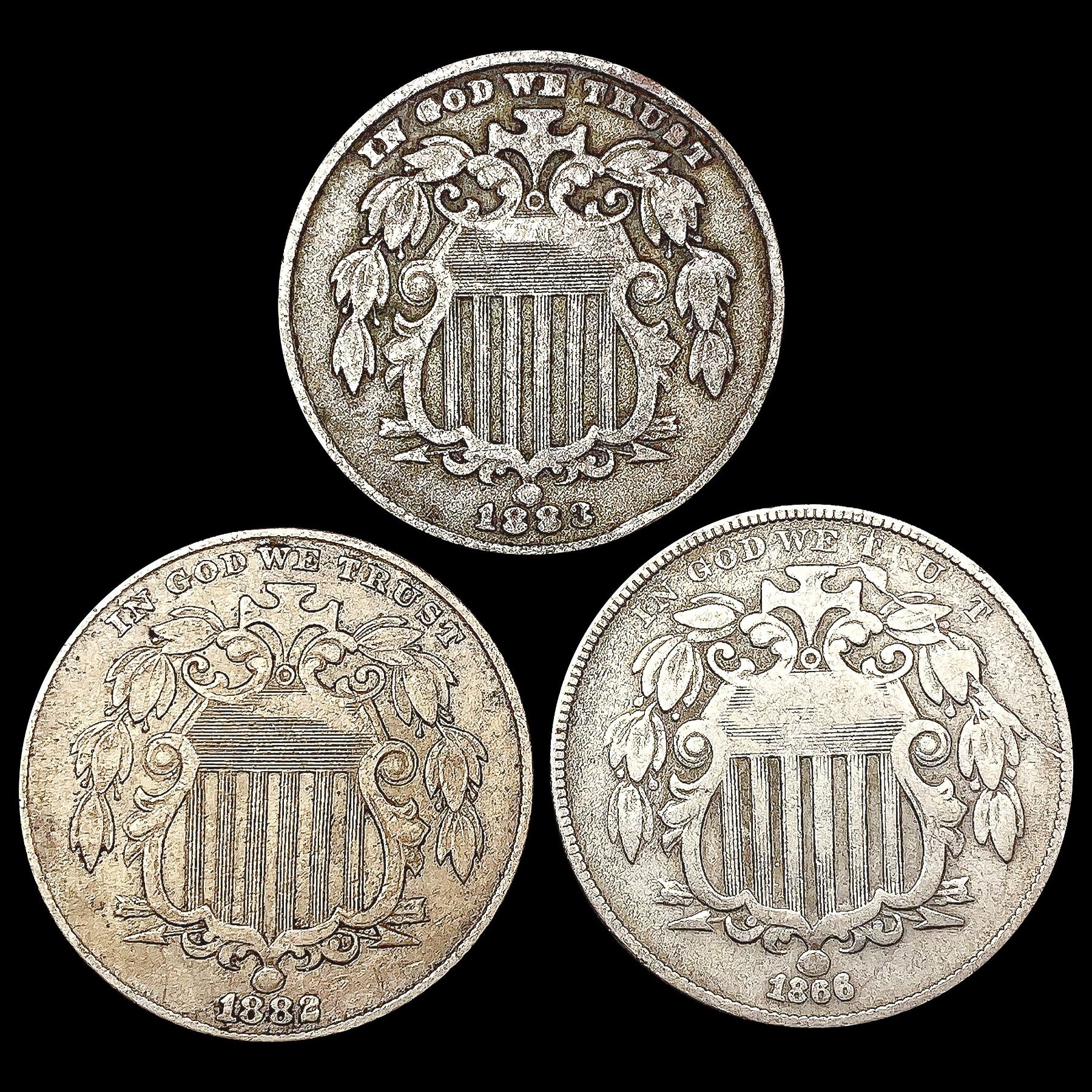 [3] US Shield Nickels [1866, 1882, 1883] CLOSELY U