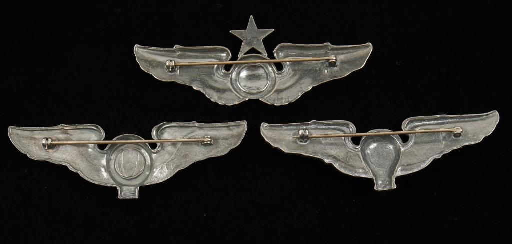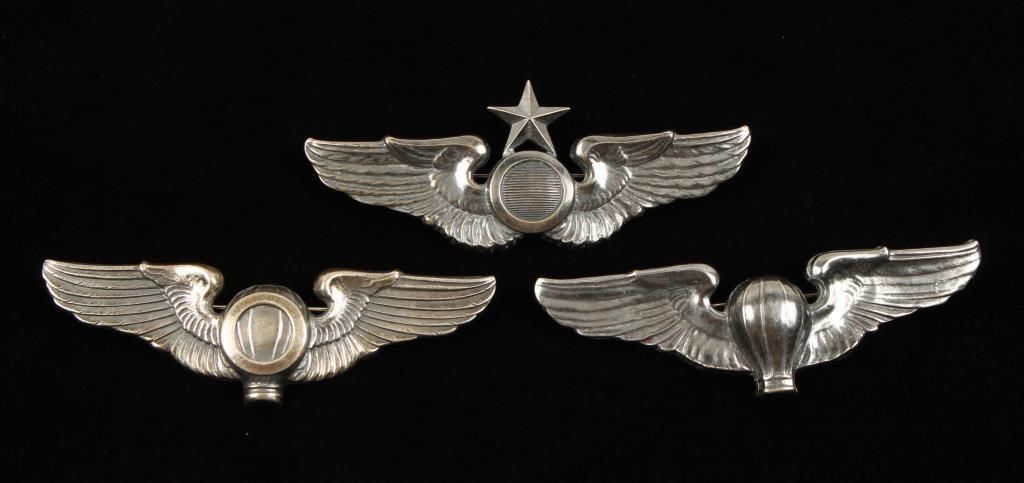 Includes a Senior Observer Wing; Balloon Pilot Wing; Balloon Observer Wing. They measure approximately 1" tall by 3 3'16" wide. All three have a thin horizontal pin back. Offered "as is", we don't guarantee the authenticity of this item, please do your research. All sales are final.