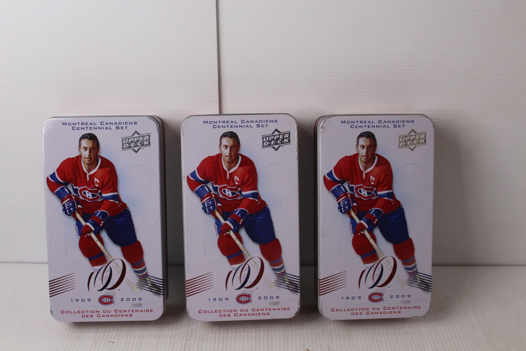 (3) Upper Deck Montreal Canadians Tins 1909-2009 with Hockey Cards