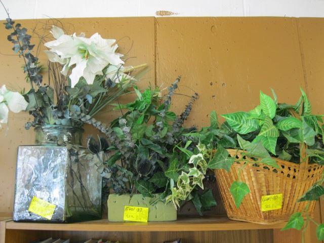 3 VASES WITH ARTIFICIAL FLOWERS