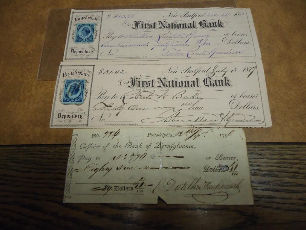 3-VERY VINTAGE CHECKS 1796,1879 & 1880 DATES