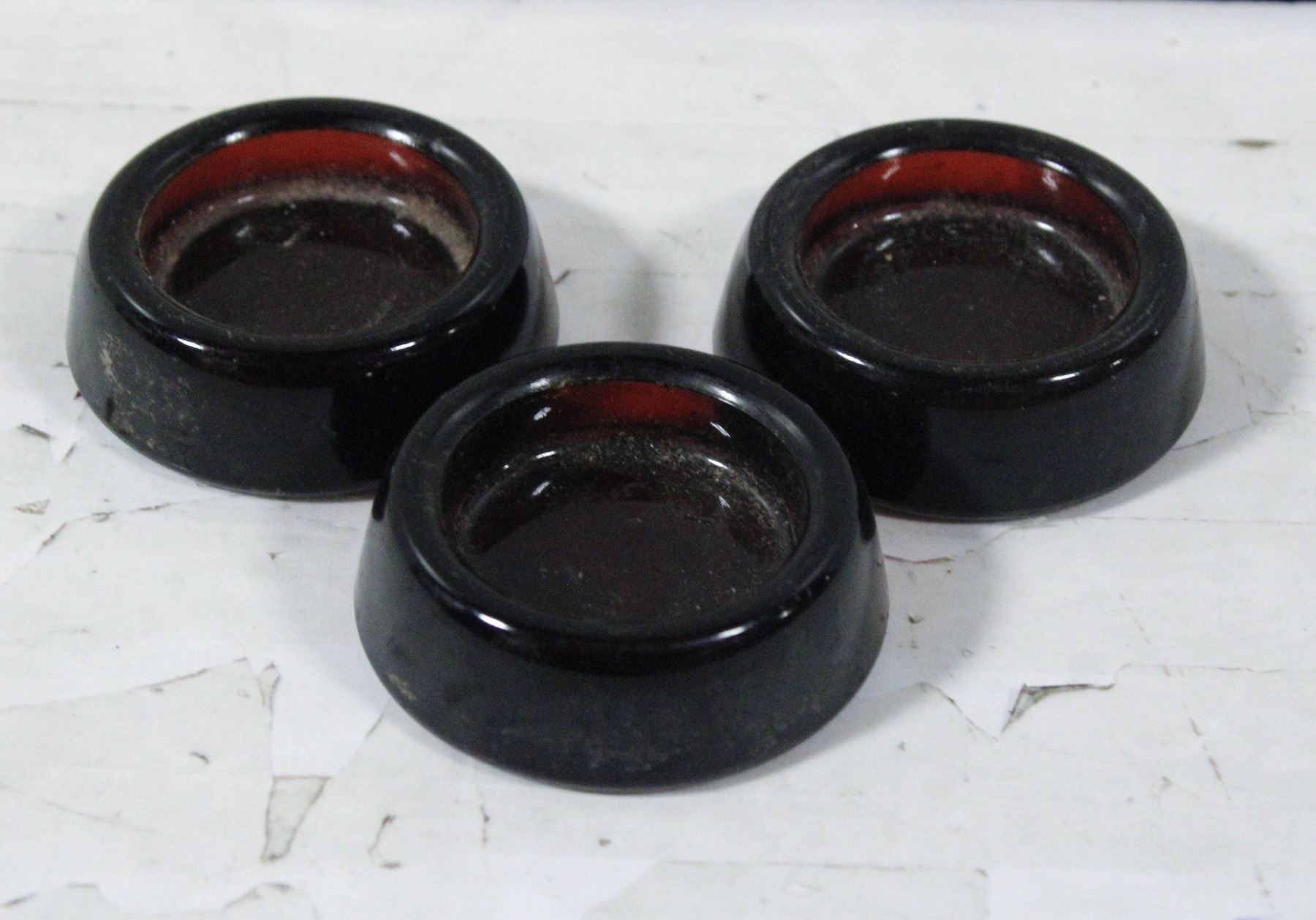 3 VINTAGE AMBER GLASS FURNITURE CASTERS