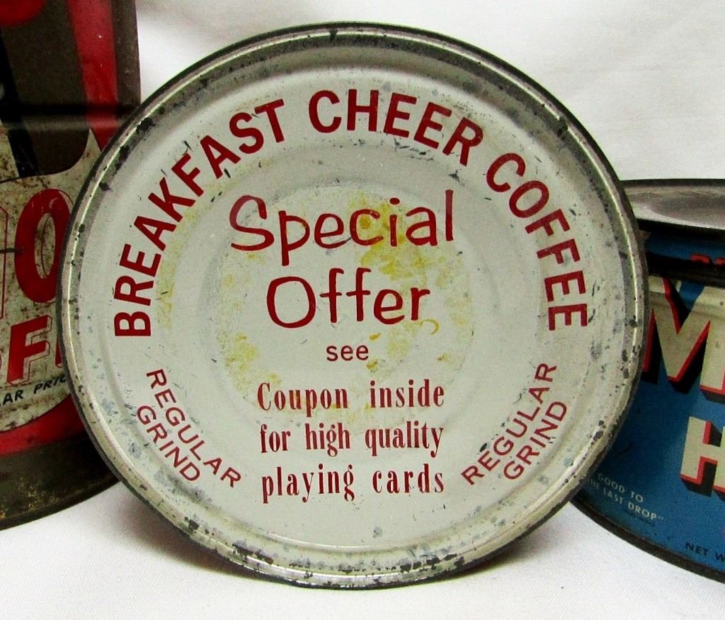 MAX. BOSCUL, MAXWELL HOUSE, BREAKFAST CHEER COFFEE CANS. THEY WILL NEED A CLEANING. SCRATCHES AND SCRAPES ARE PRESTENT.