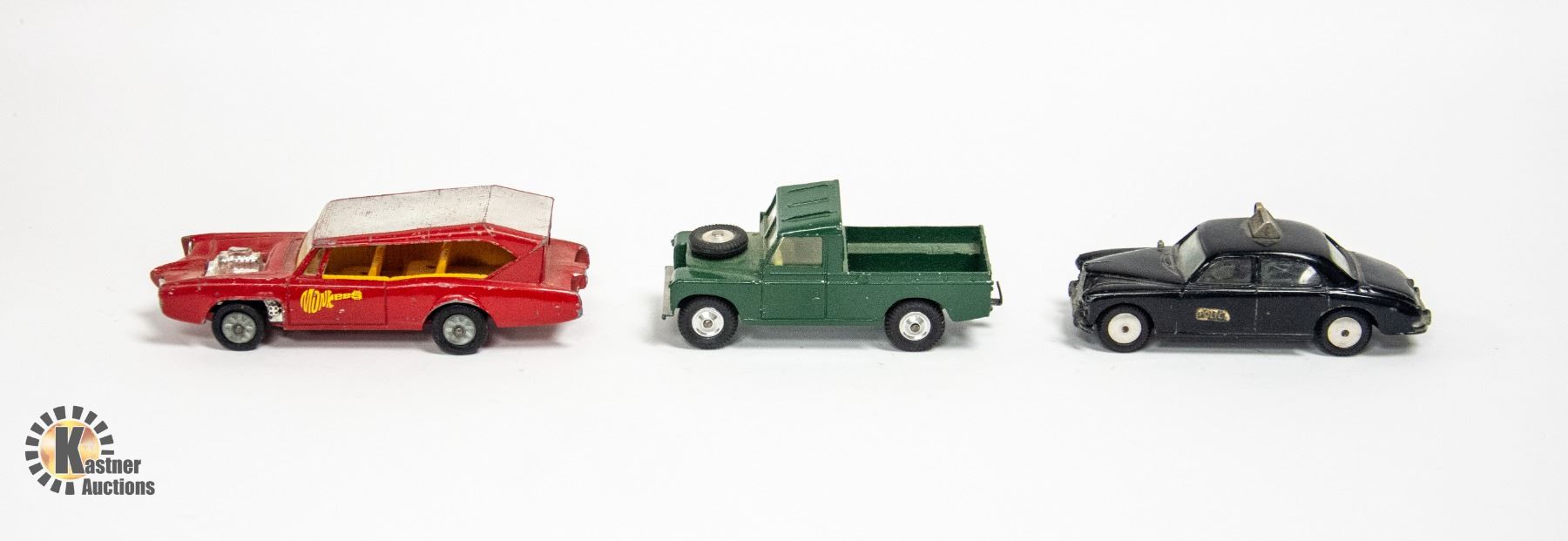 3 VINTAGE CORGI TOYS: MONKEEMOBILE, LAND ROVER