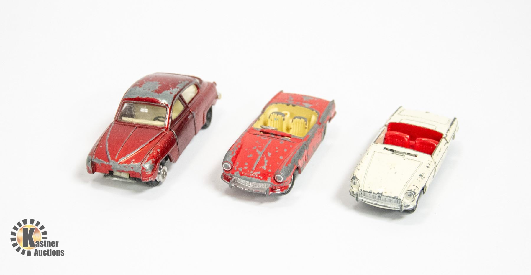 3 VINTAGE DINKY CARS: SAAB 96 #156, TRIUMPH