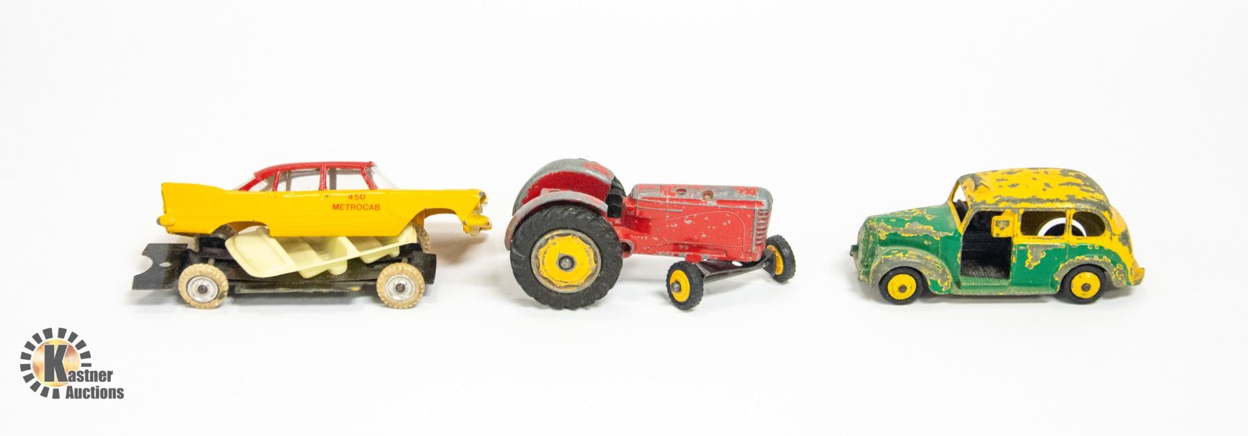 3 VINTAGE DINKY TOYS: AUSTIN TAXI #254, MASSEY