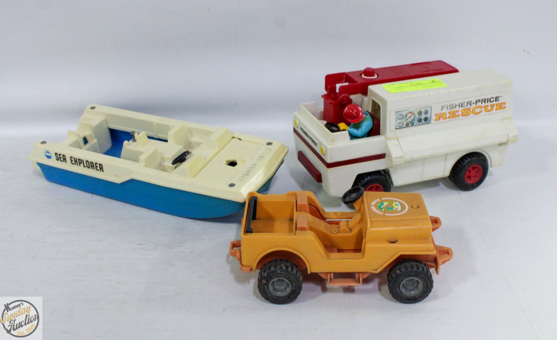 3 VINTAGE FISHER PRICE VEHICLES - BOAT,