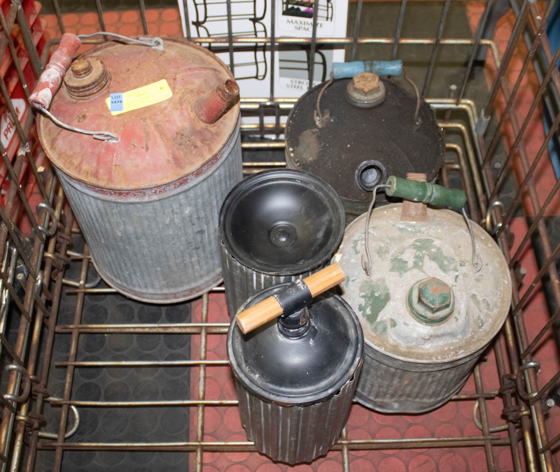 3 VINTAGE GAS CANS, & 2 DECORATIVE METAL