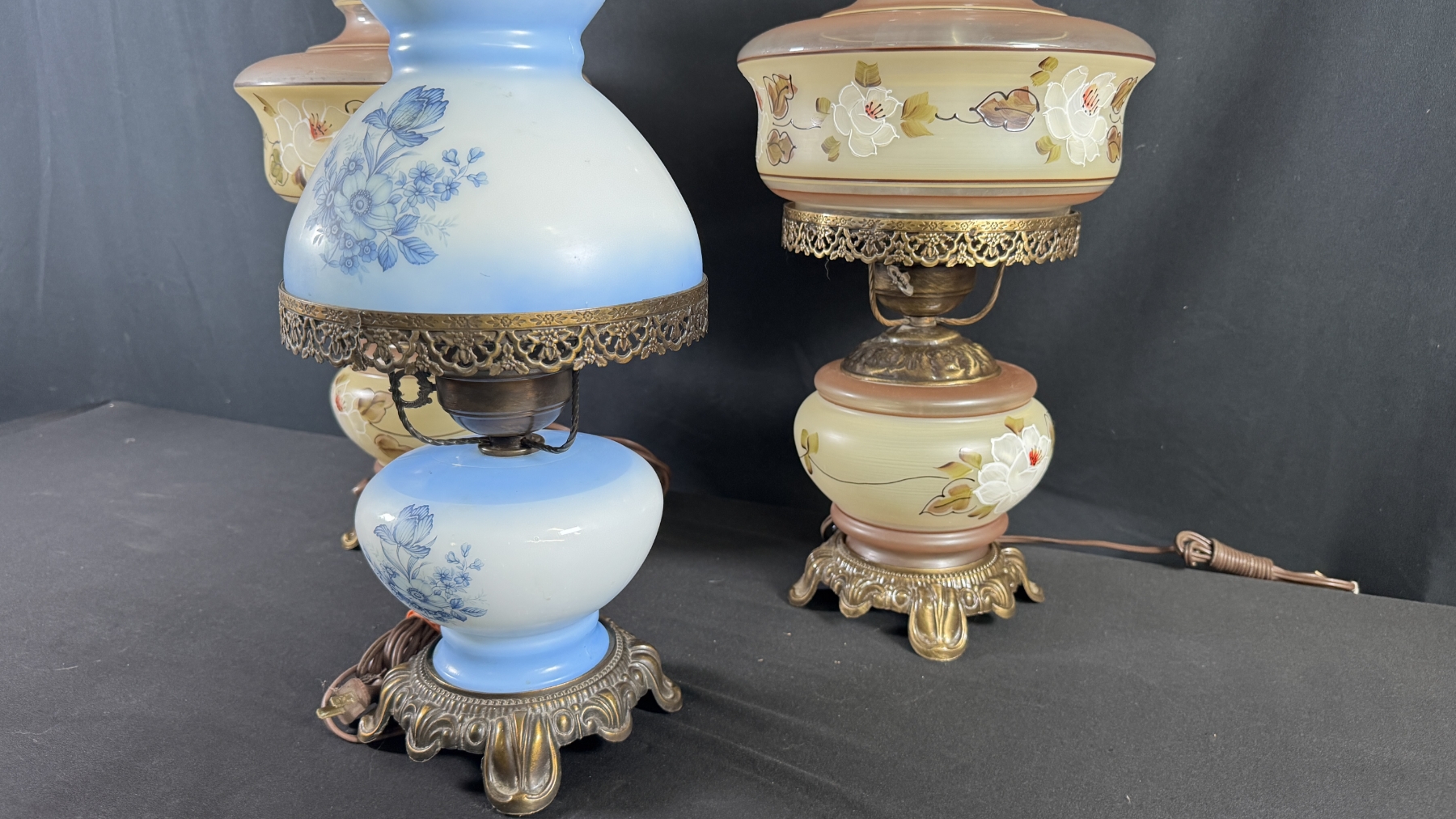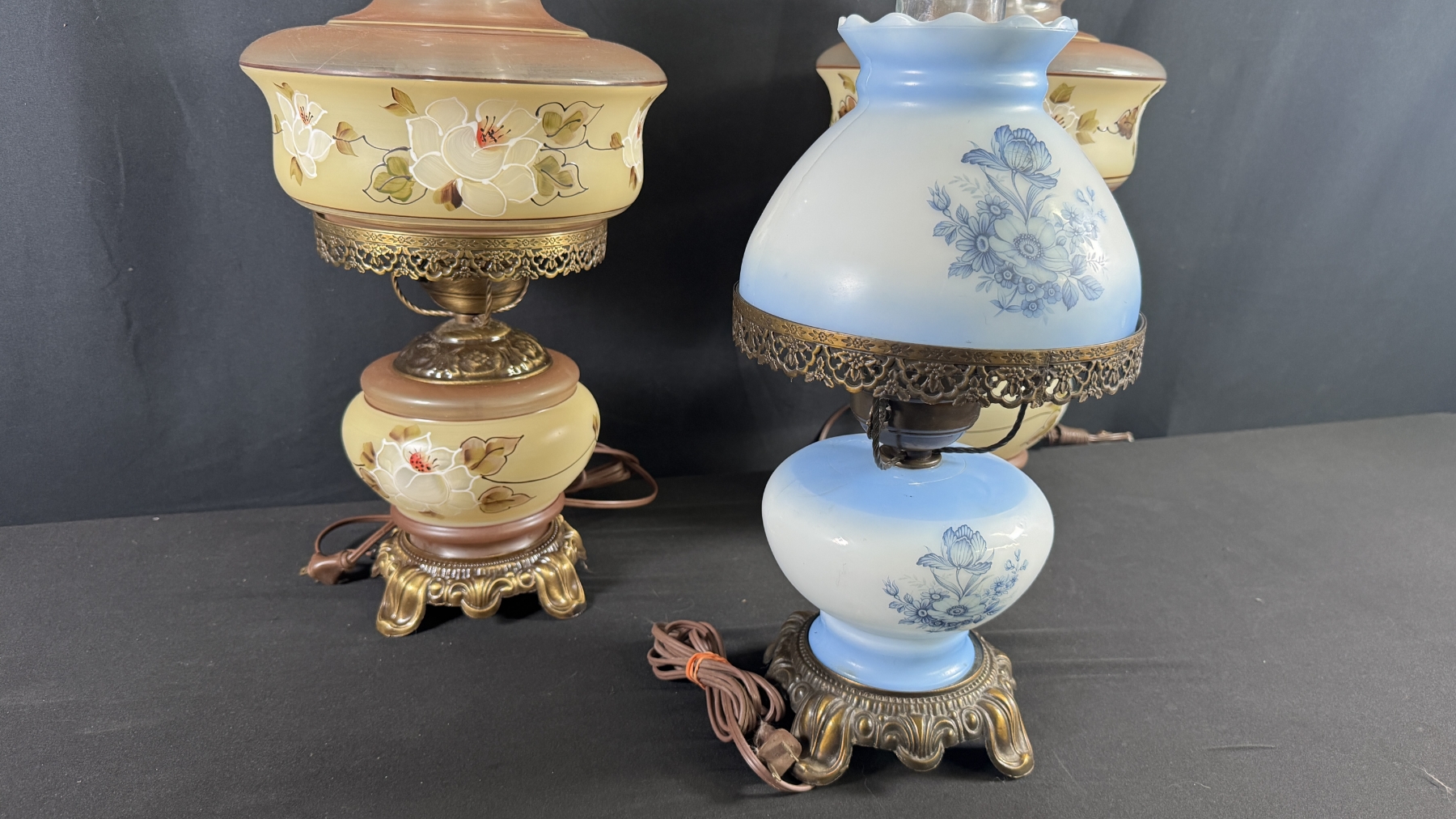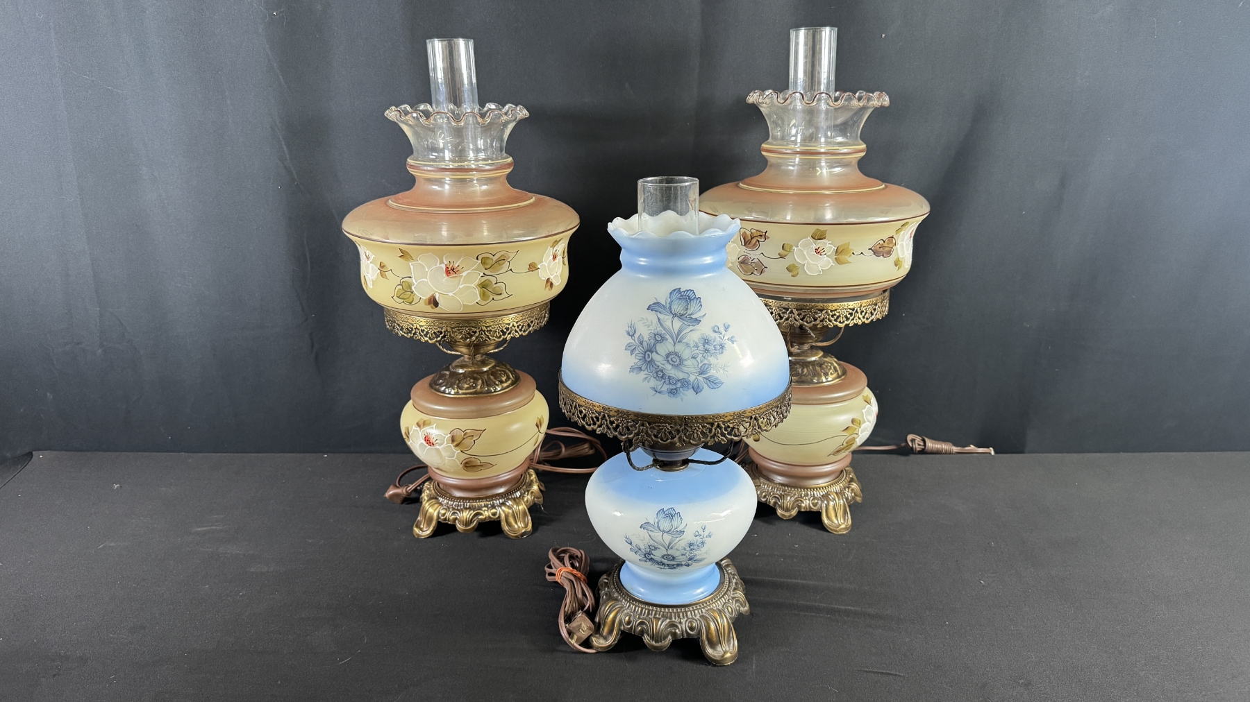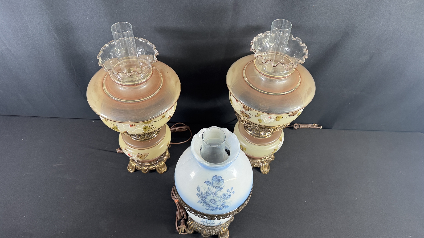 3 VINTAGE HURRICANE-STYLE ELECTRIC TABLE LAMPS