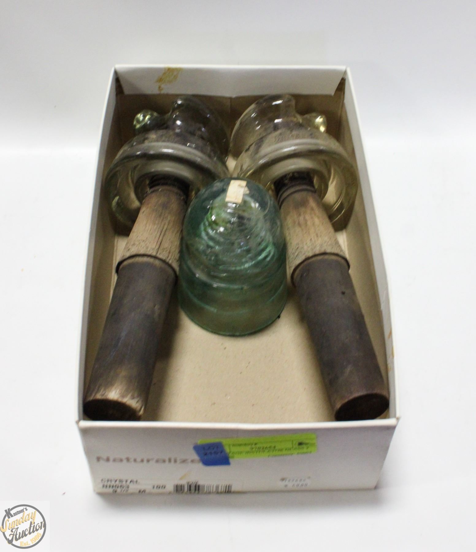 3 VINTAGE INSULATORS GLASS 2 STYLES