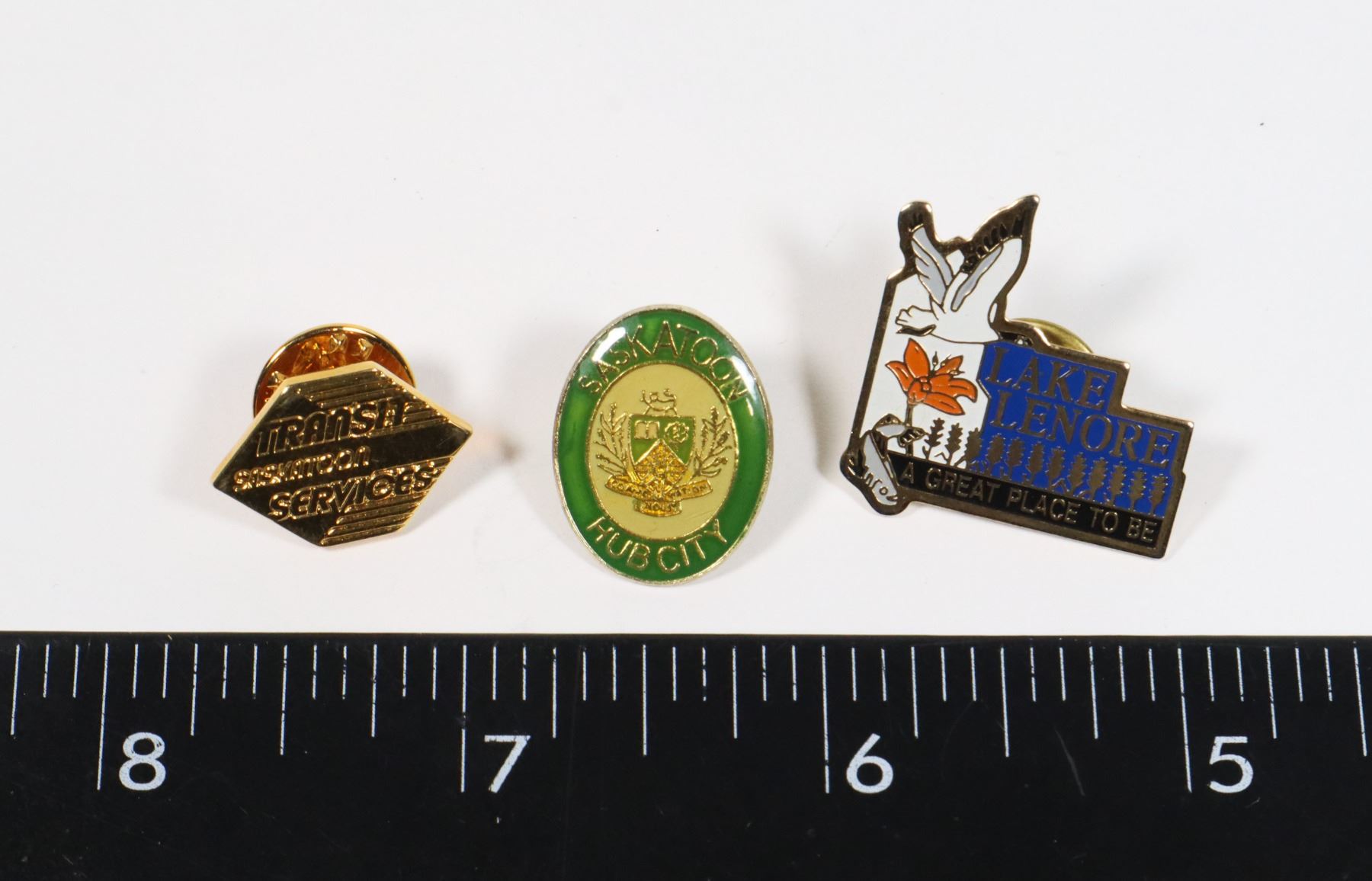 3 VINTAGE LAPEL PINS TRANSIT SASKATOON SERVICES,