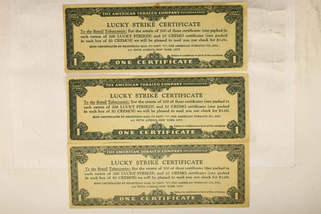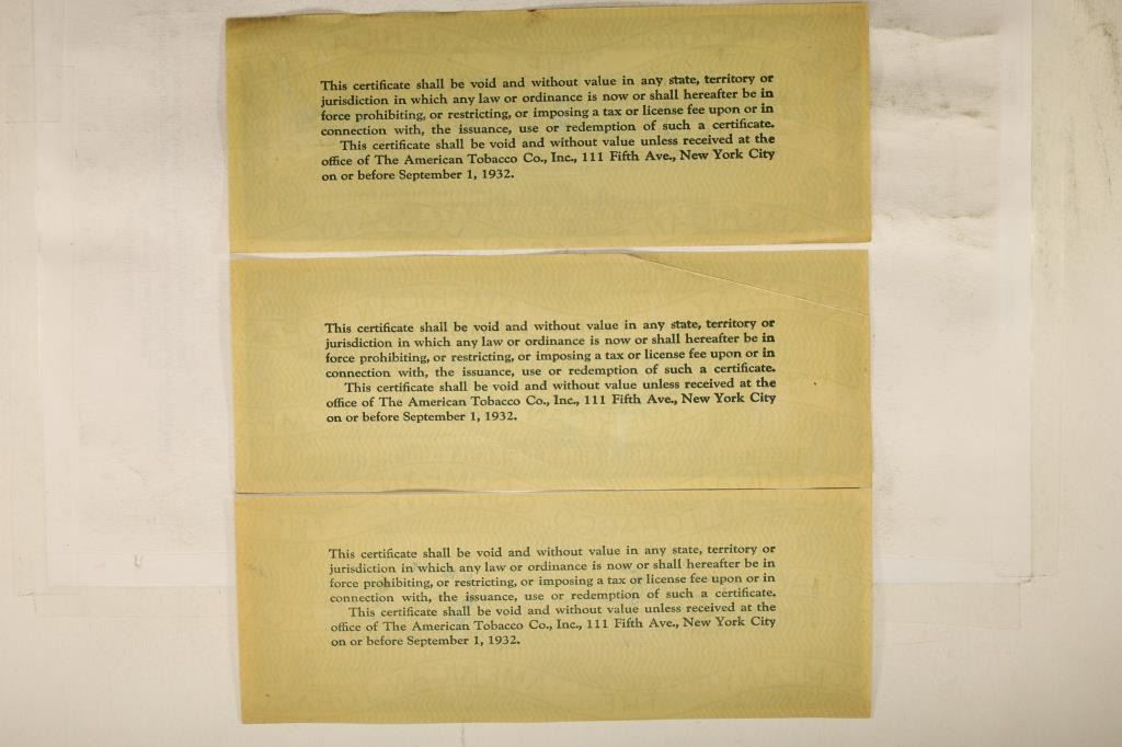 TOBACOO COMPANY WHICH WERE PLACED IN CARTONS OF CIGARETTES. AFTER COLLECTING SO MANY YOU COULD SEND THEM IN FOR $1.00