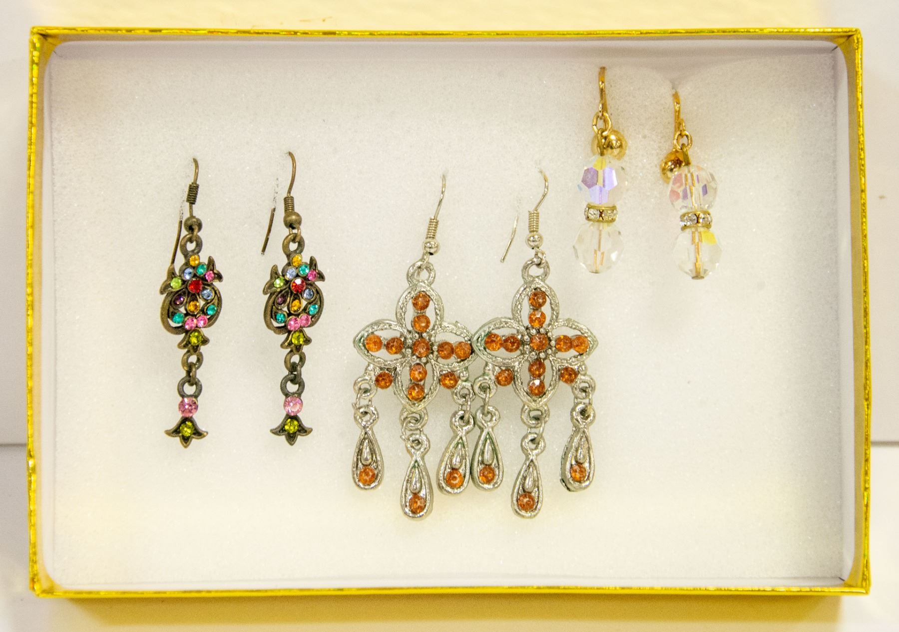 3 VINTAGE SETS OF EARRINGS GEM STONES