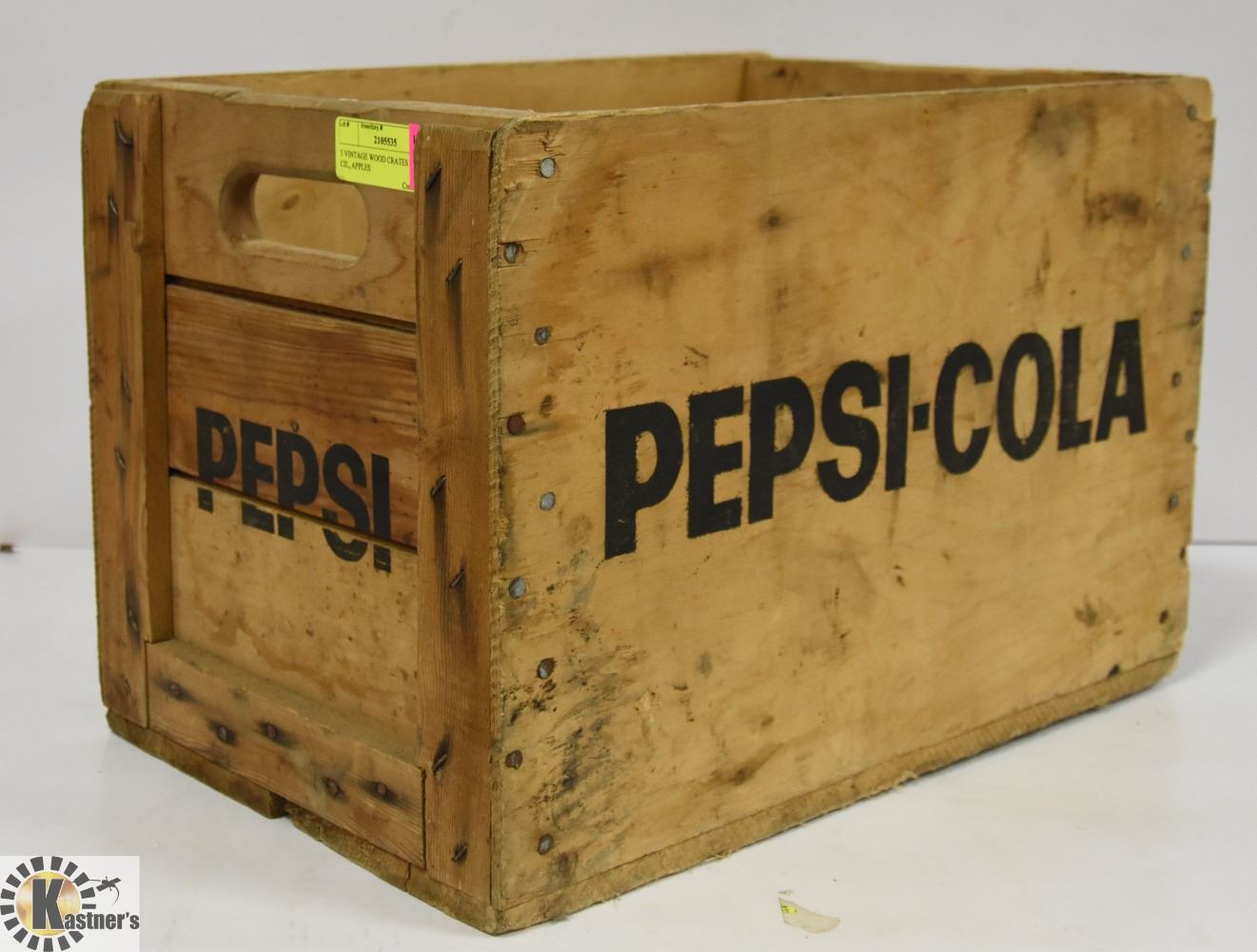 3 VINTAGE WOOD CRATES PEPSI, CIL, APPLES
