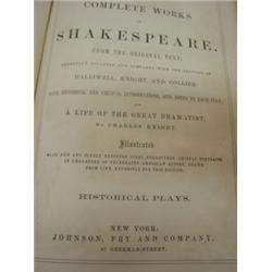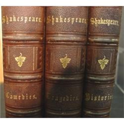 3 Vol. "The Complete Works of Shakespeare" leather bound book set. Published by the Johnson, Fry and Company, New York. Signed 1866 on first page. Good condition.