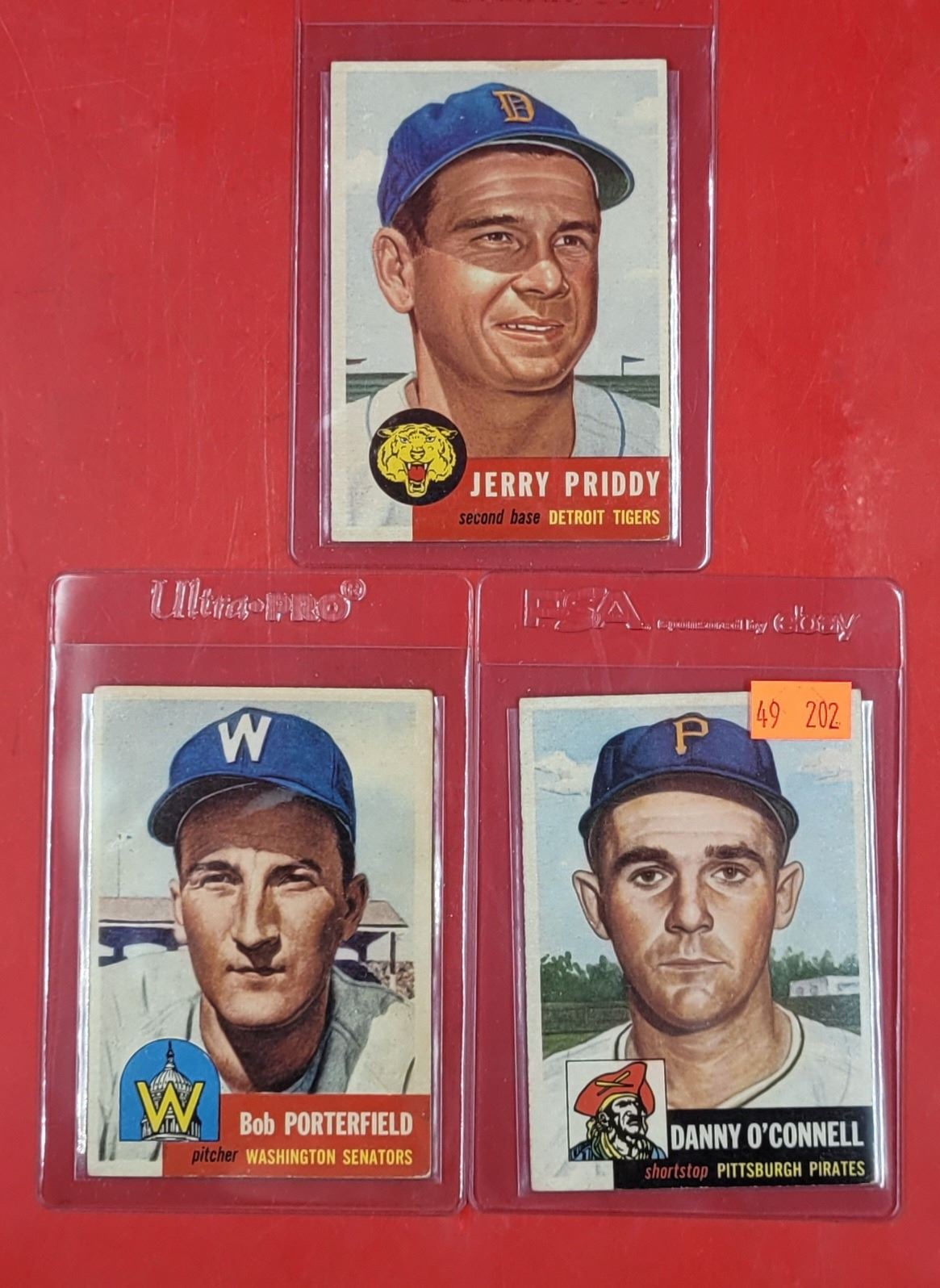 3 VTG Baseball Cards (Priddy, Porterfield, & O'Connell)