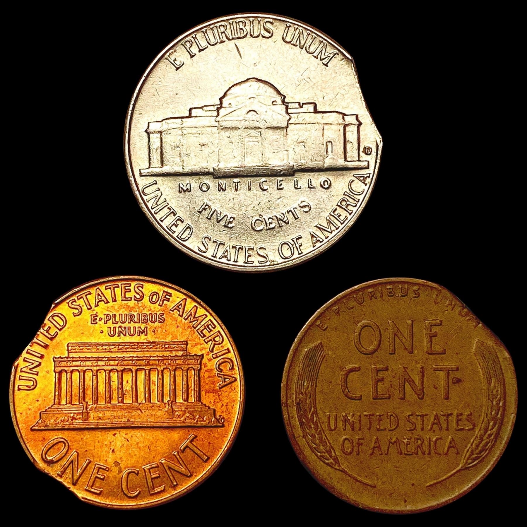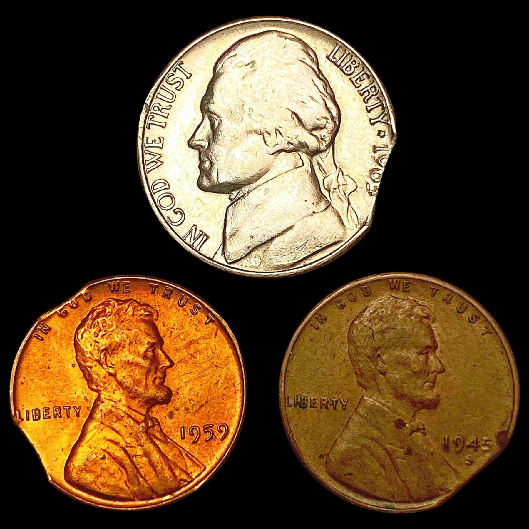 [3] Varied US Clipped Coin [1905, 1945-S, 1959] HIGH GRADE