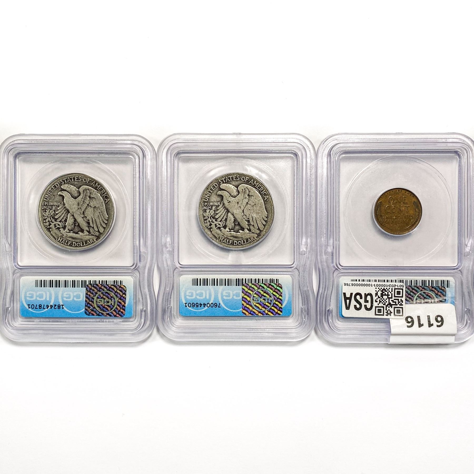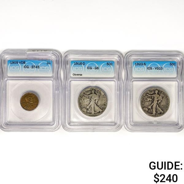 (3) Varied US Coinage ICG (1909 VDB, 1916-D, 1923