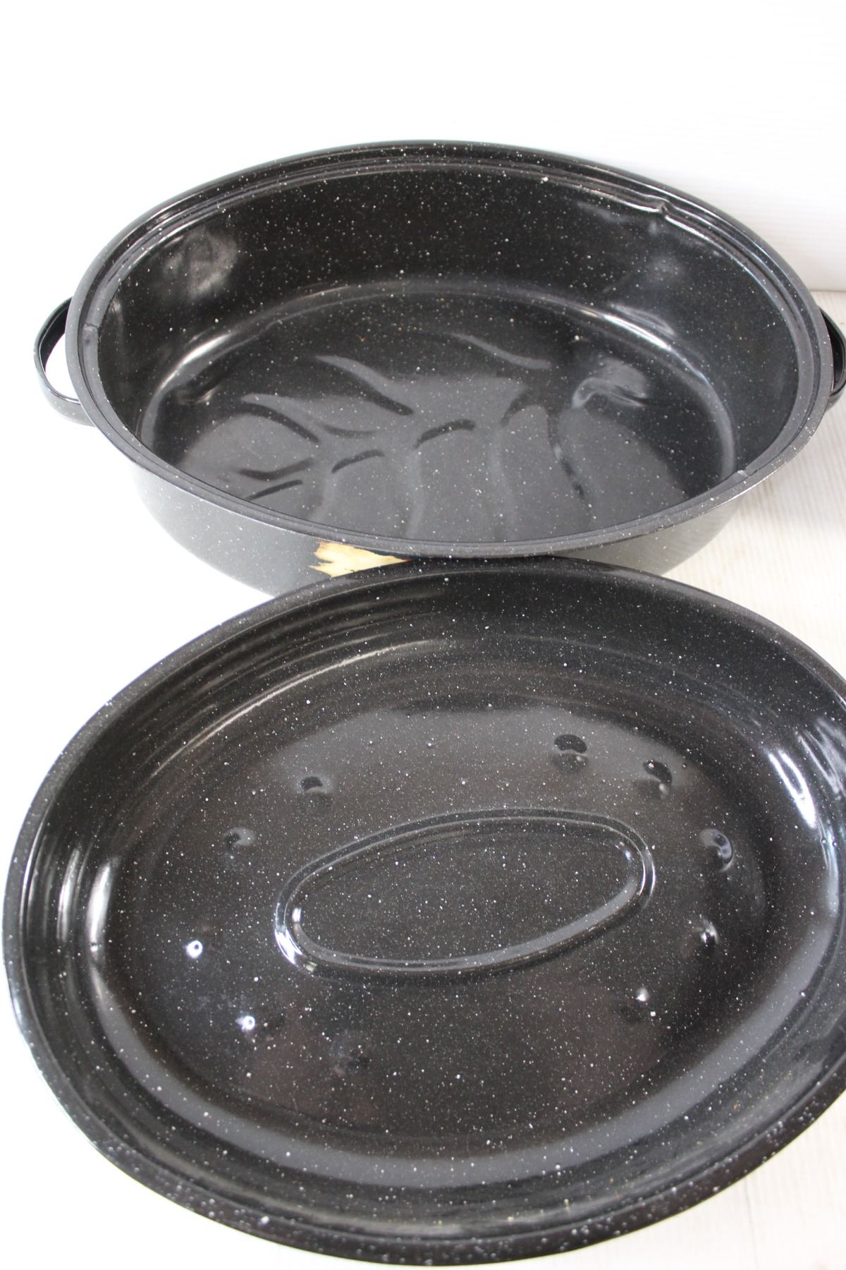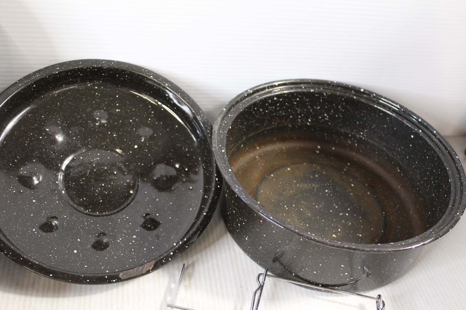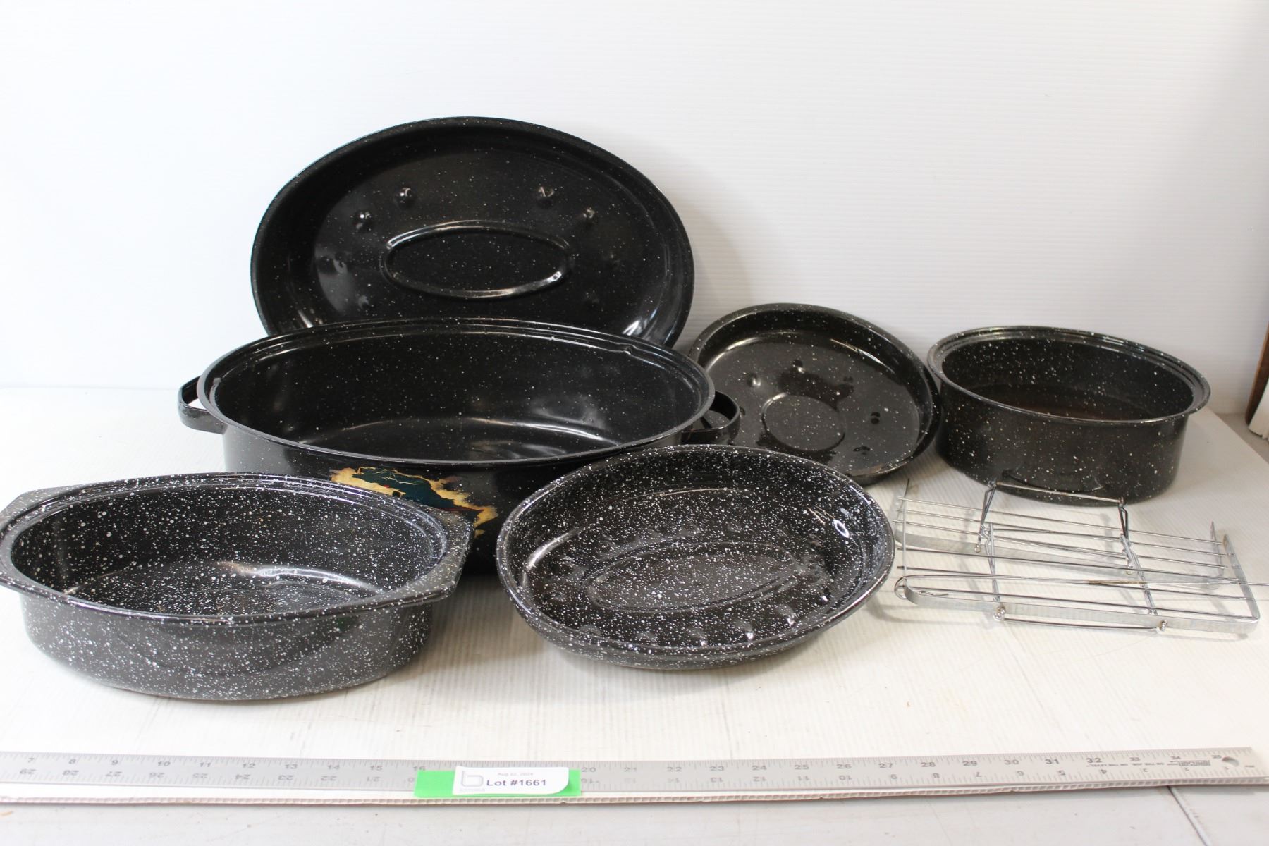 (3) Various Graniteware Roasters, Metal Wire Racks