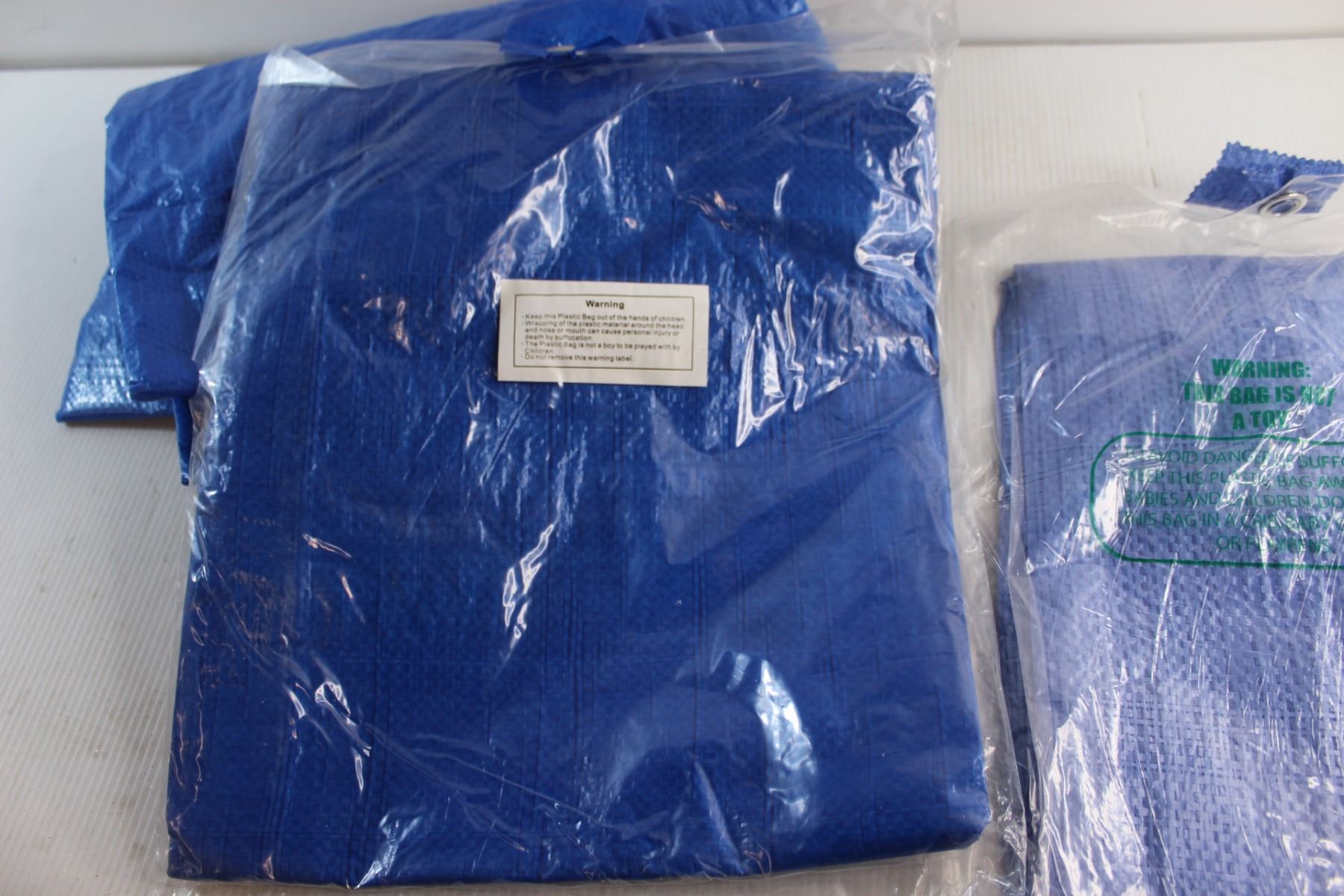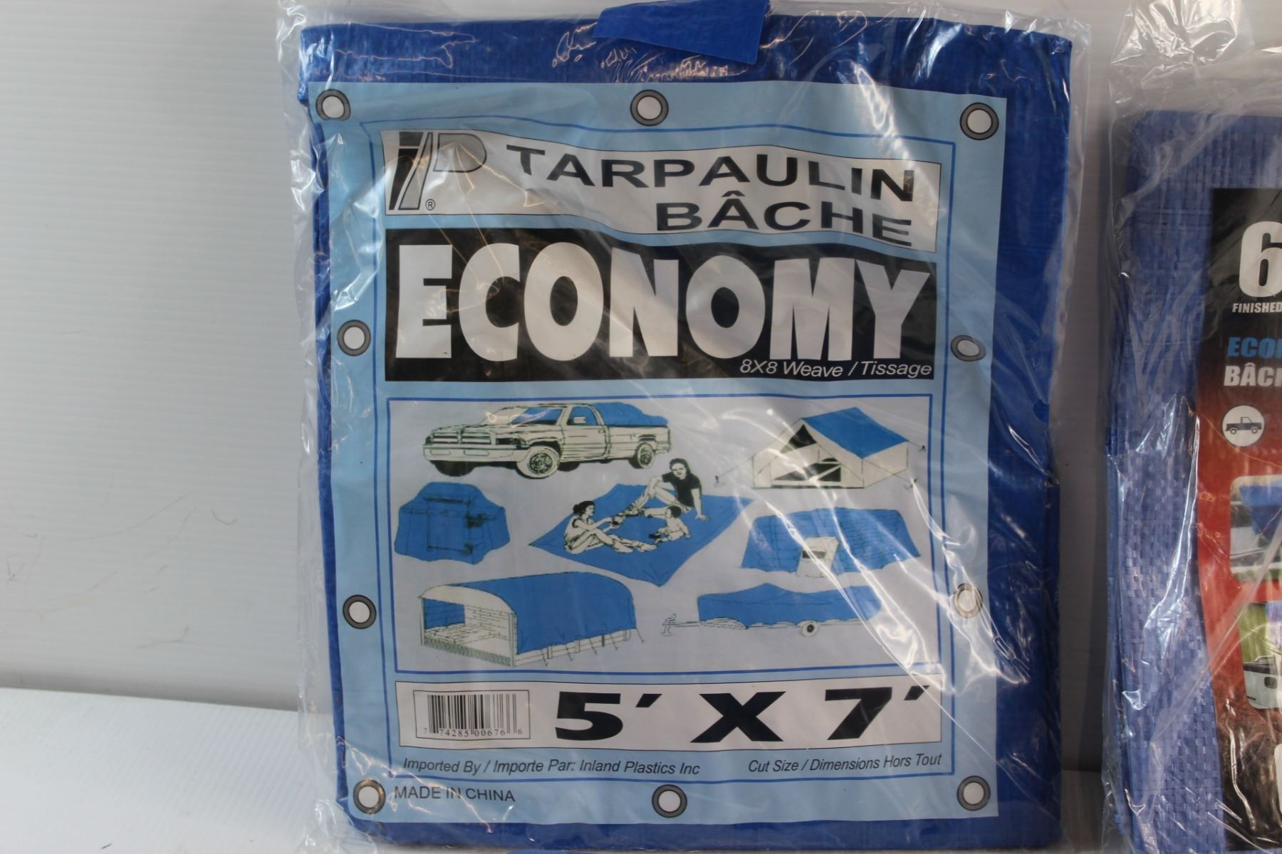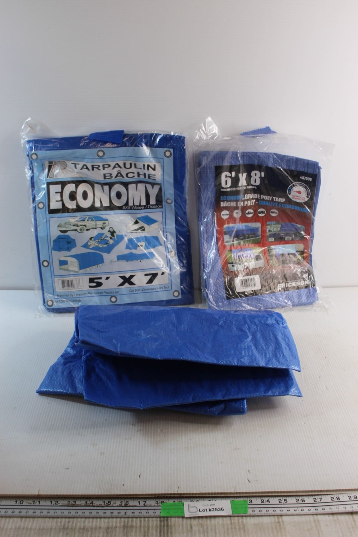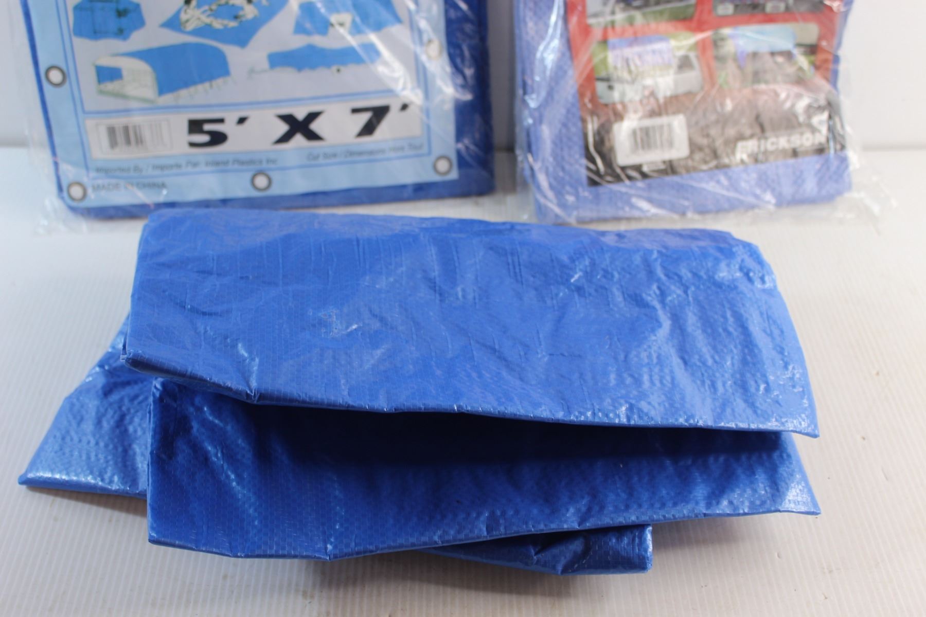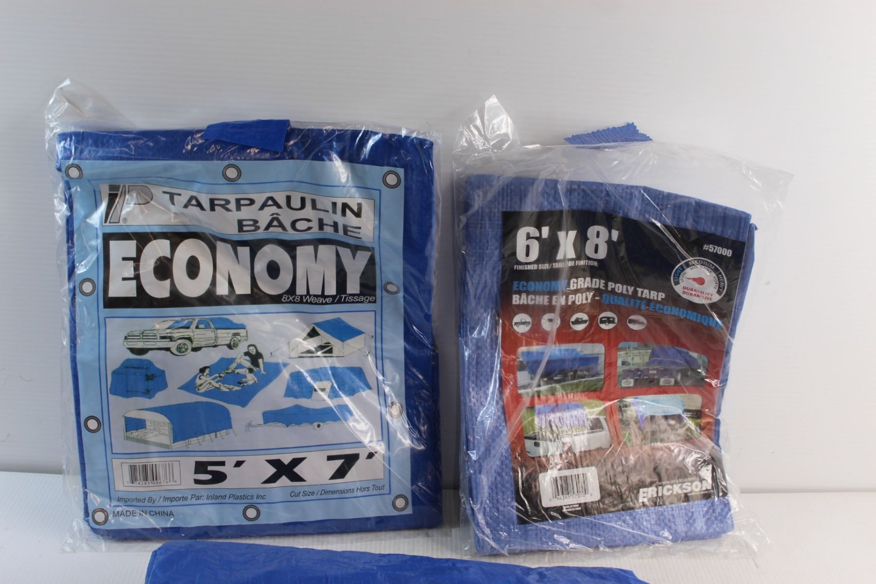 (3) Various Size Poly Tarps - 5' x 7'. 6' x 8' and 8' x 10' - New