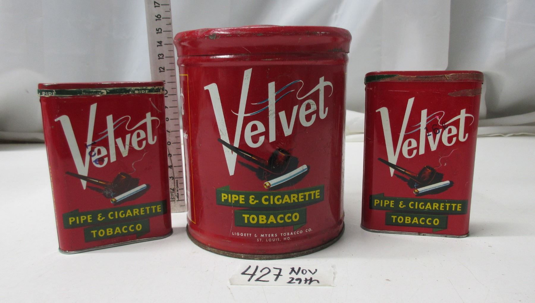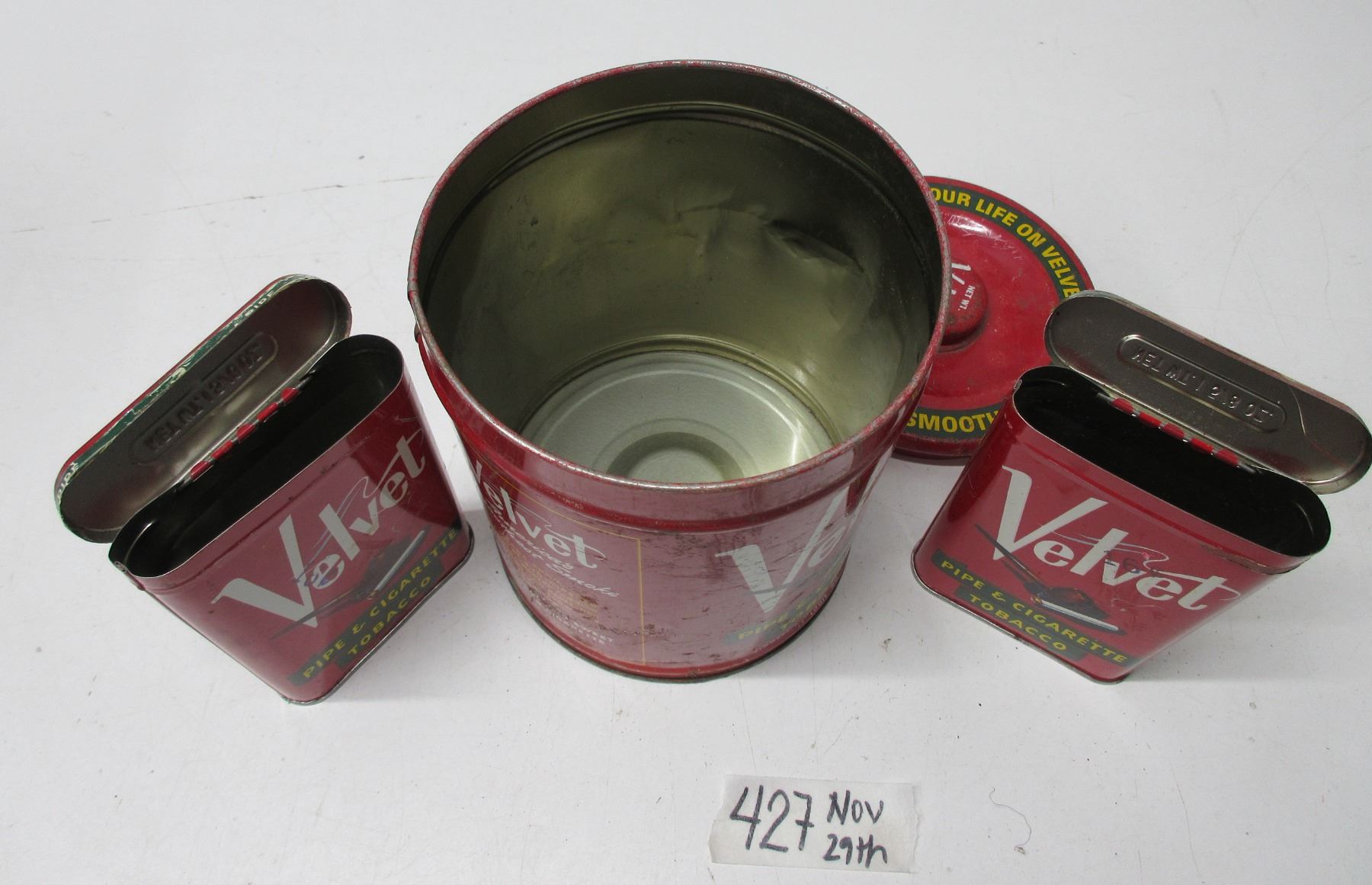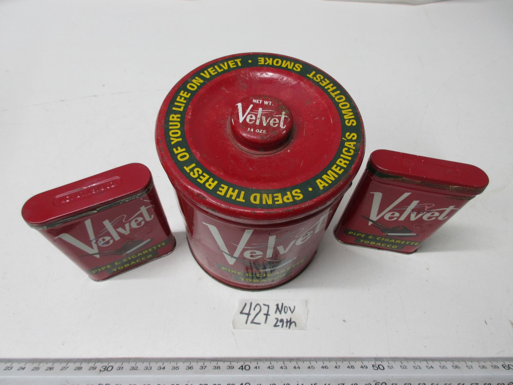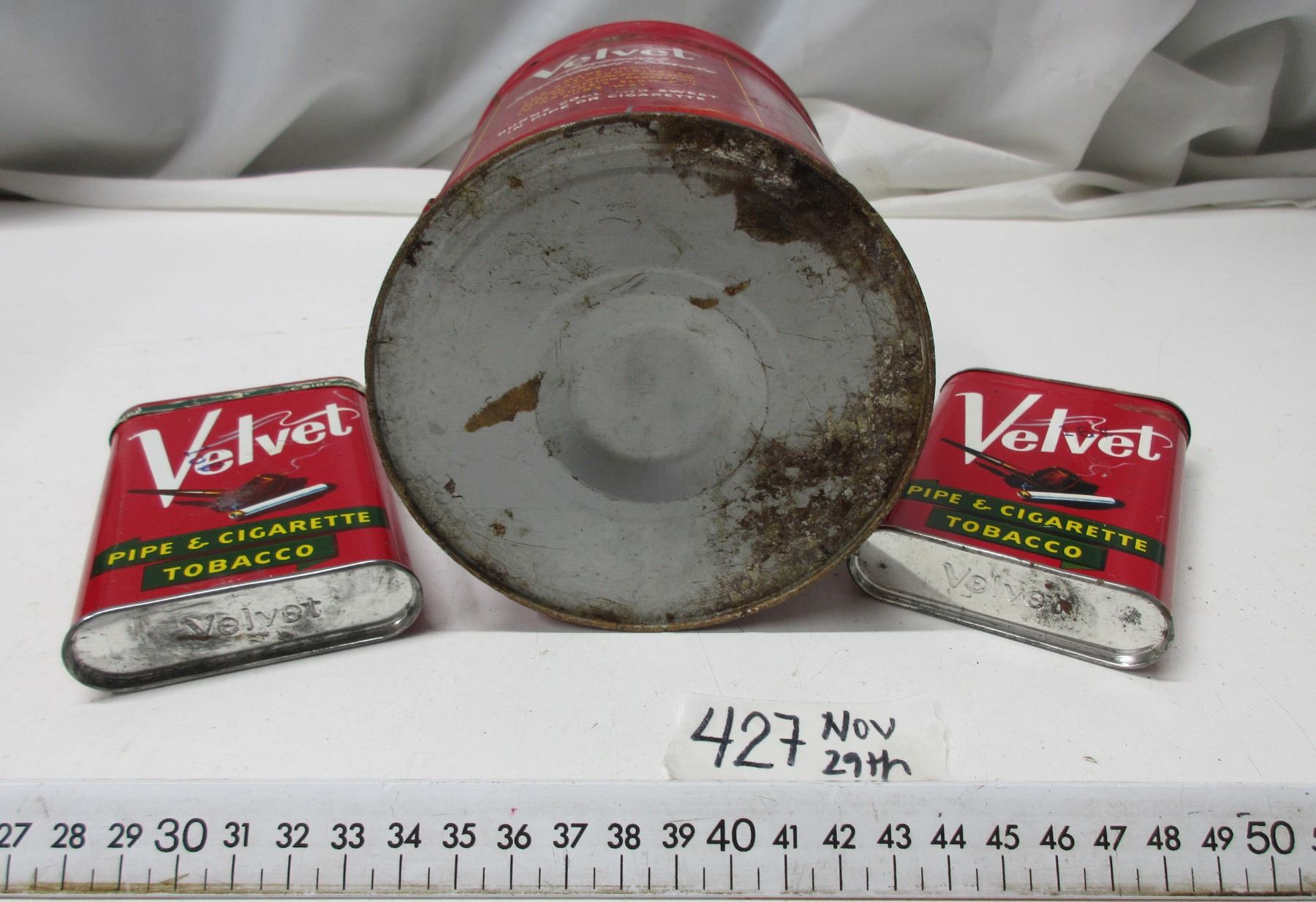 3 Velvet tabacco tins, 1 round and 2 pocket