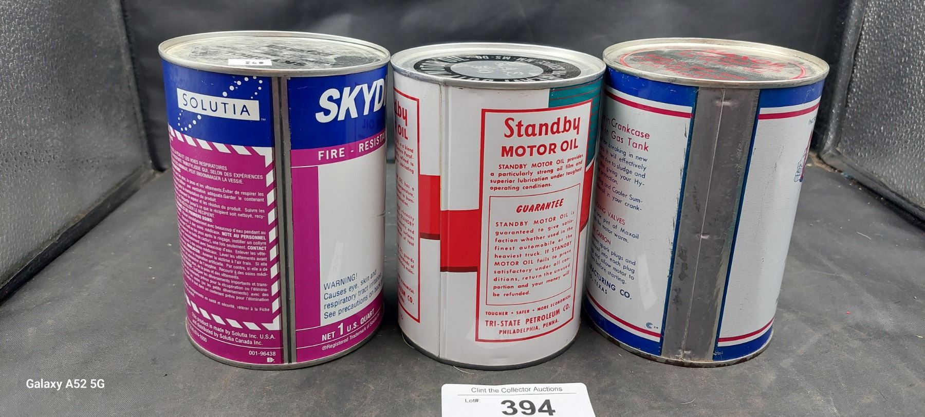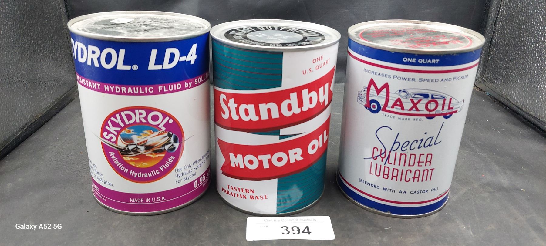 3 Very nice condition stand by max oil and Skydrol U.S. oil quarts, 1 full 2 empty