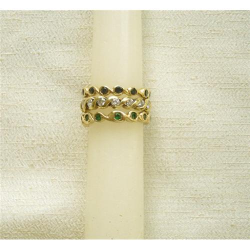 <tr><td>Title:3~Vintage 14K Stack Rings/Dia./Sapp./Emerald</td></tr>