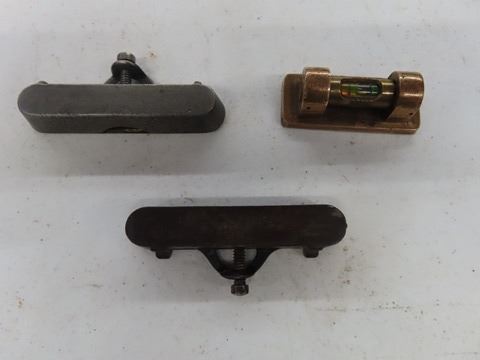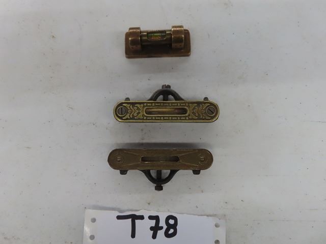 3 Vintage Antique Small Metal Antique Levels: 2 Stanley string levels & 3.3” - It appears to be part of another level.
