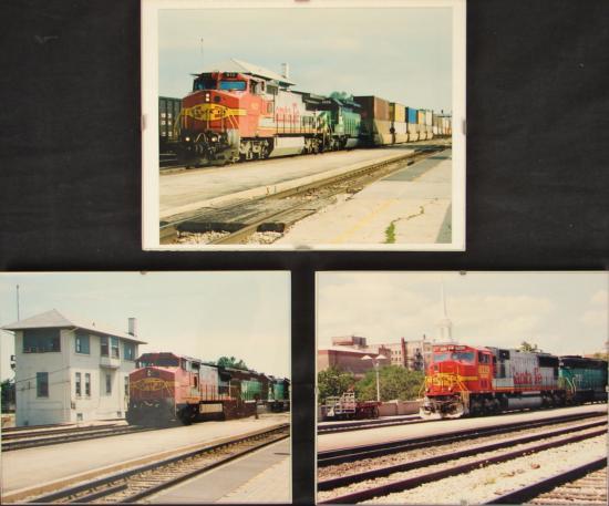 Shown here are three vintage photographs of Burlington Northern Santa Fe locomotives complete with clip-frames. Add these classic photographs to your BNSF collection today! Photo 1 Dimensions with frame: 8 by 10 inches Engine numbers: 845 and 6846
