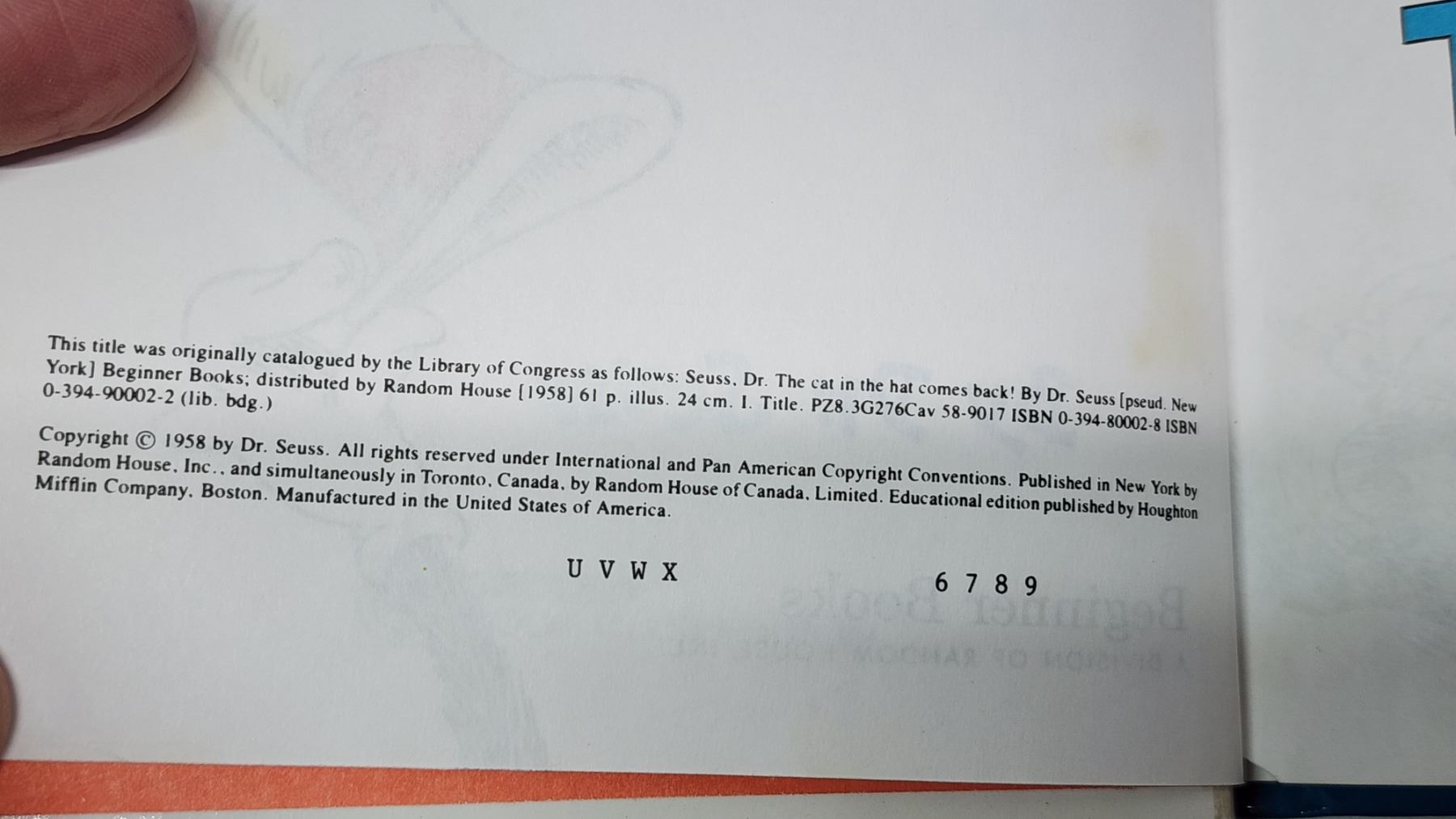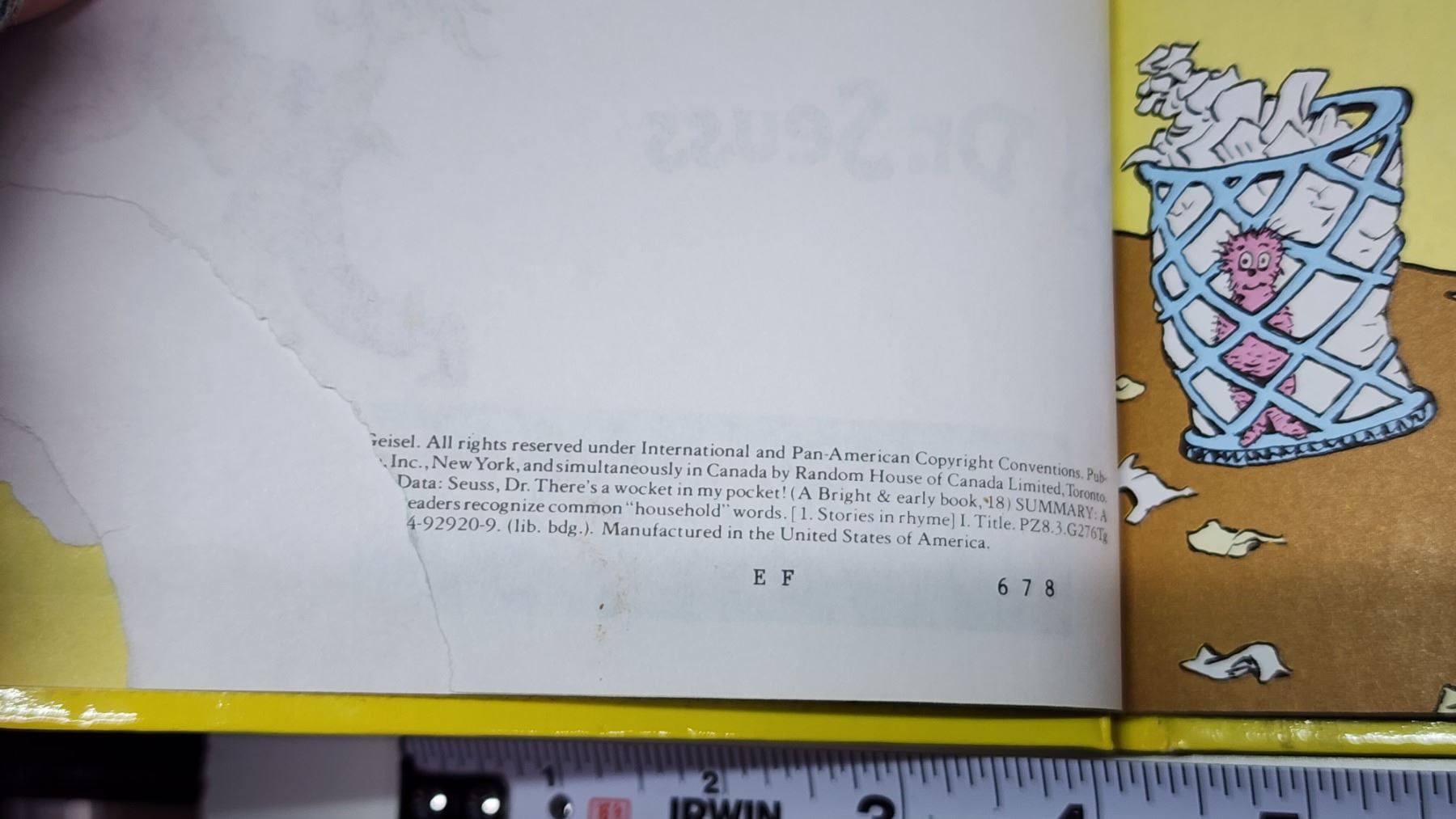 3 Vintage Dr. Seuss books - "There's a wocket in my pocket", "The cat in the hat comes back", & "Oh,