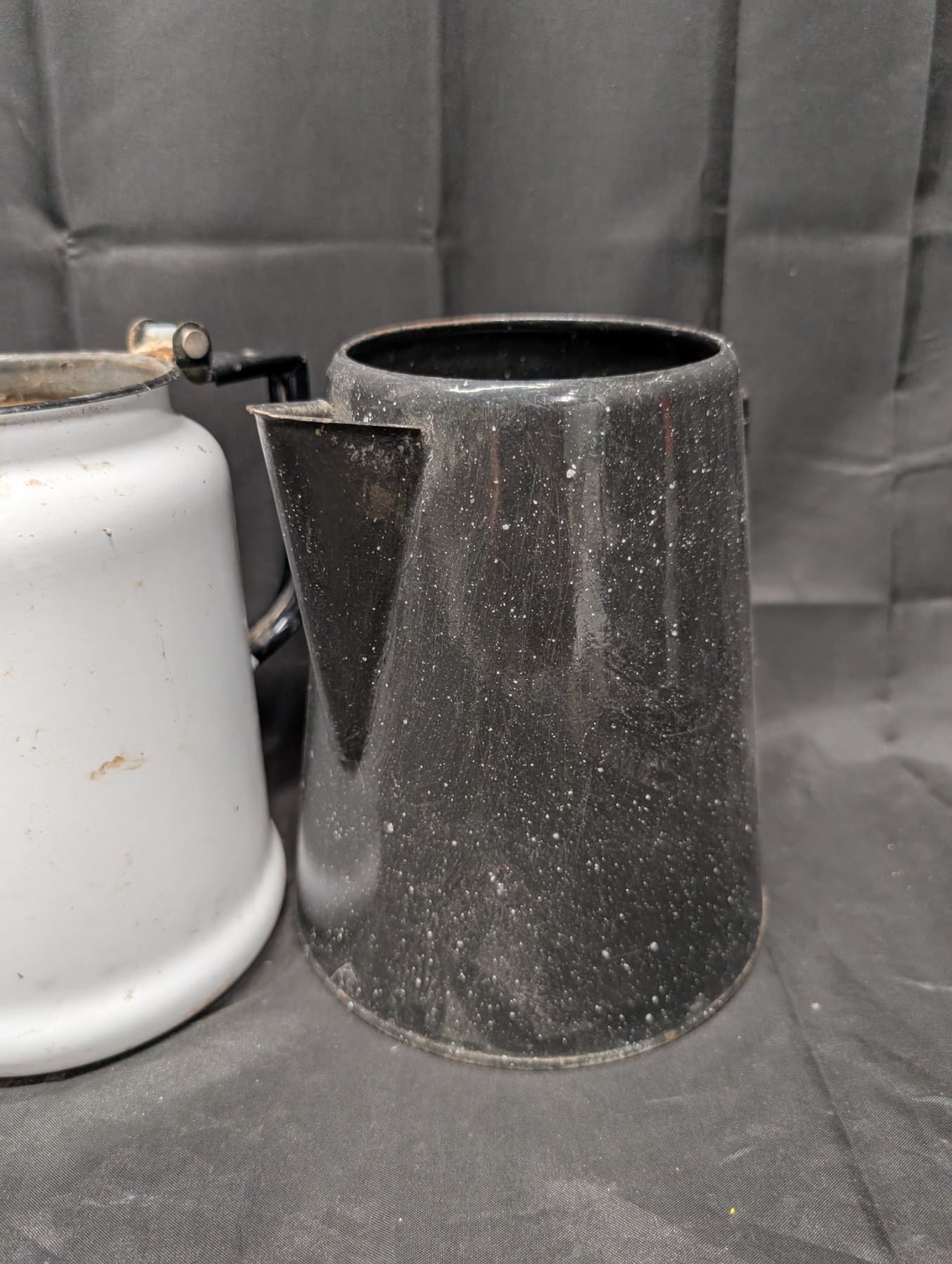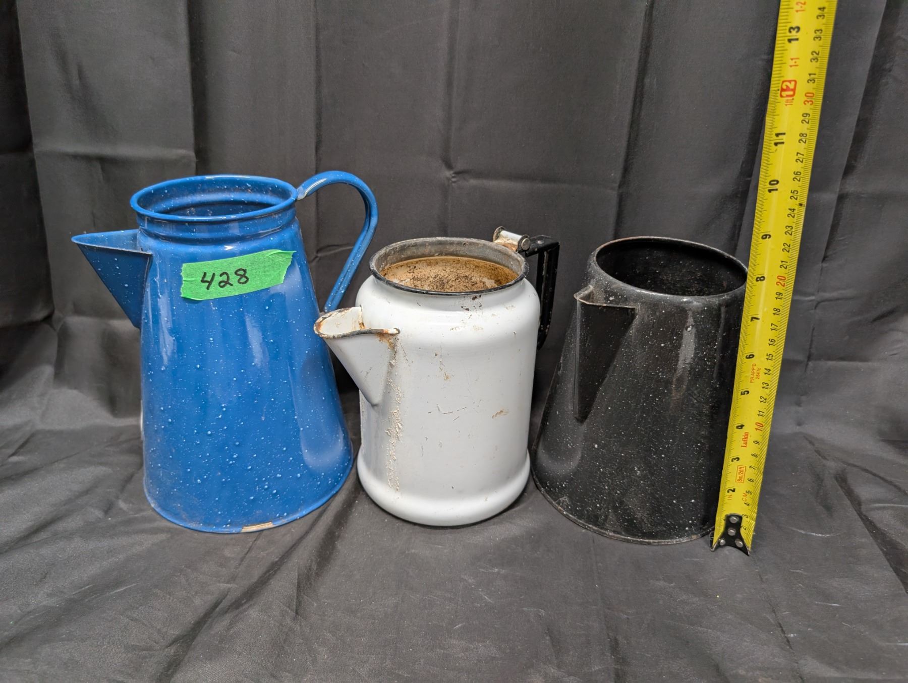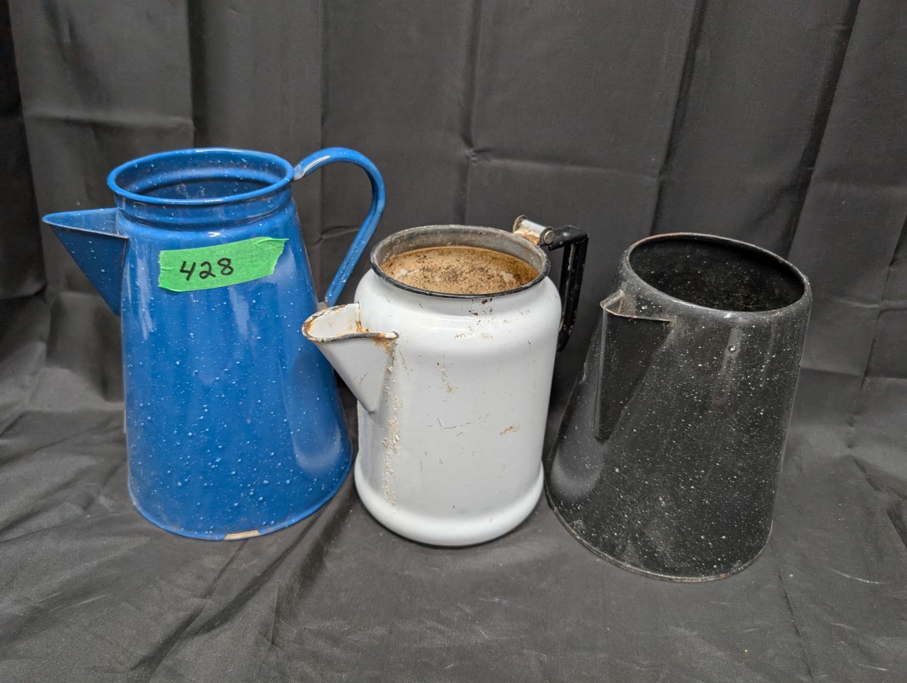 (3) Vintage Enamel Coffee Pots (All Lids Missing)
