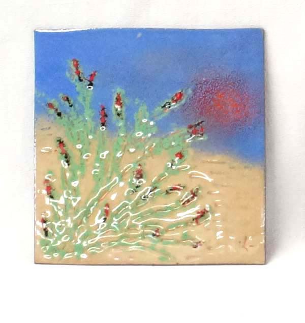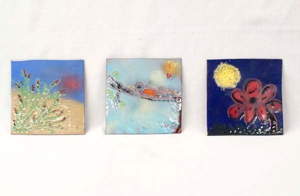 3 Vintage Enamelware Tiles, measure 5'' x 5'', beautiful pieces